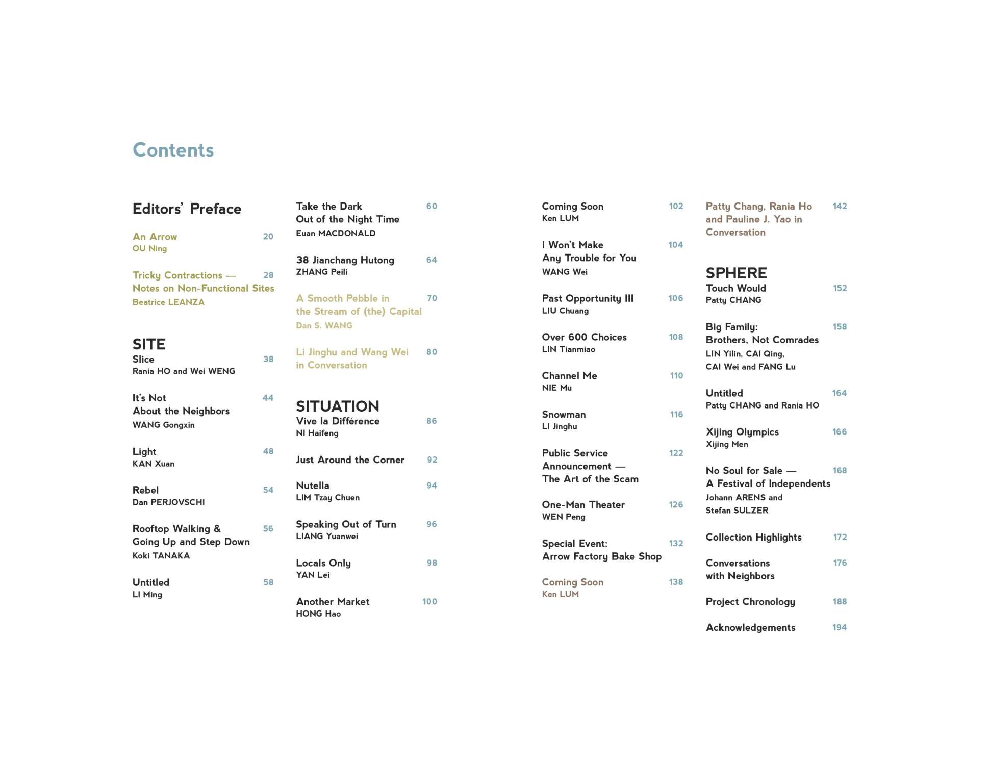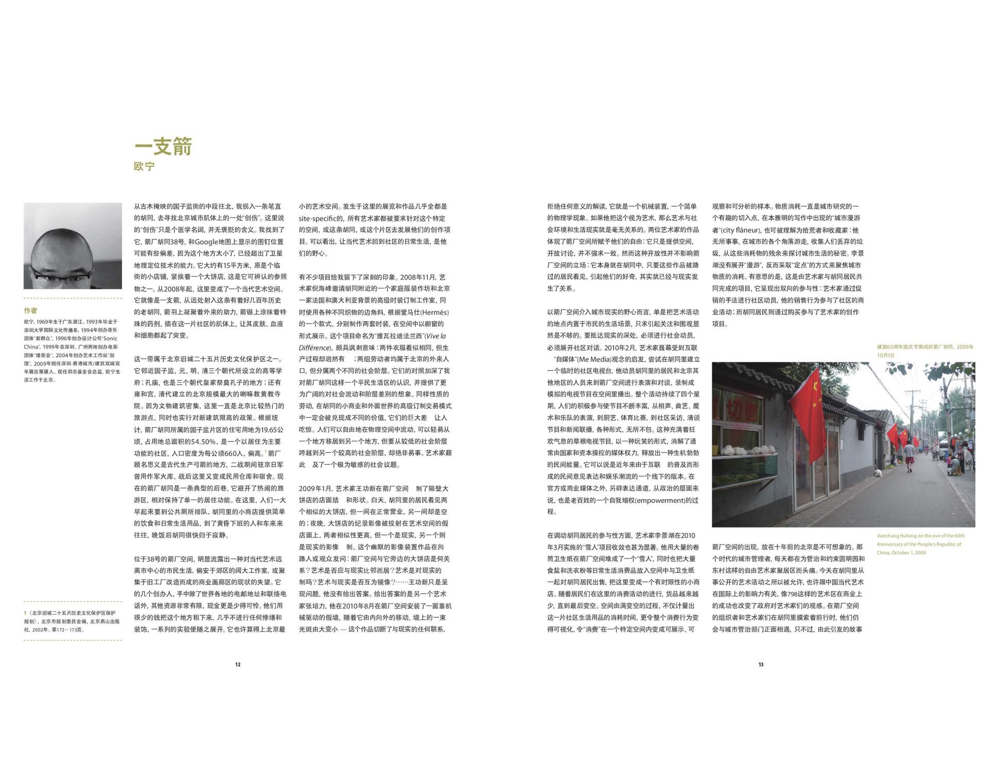 Arrow Factory is an independently run art space located in a narrow 200-year-old alleyway in the center of Beijing. Founded in 2008, Arrow Factory reclaimed an existing storefront and transformed it into a space for site-specific installations and projects by contemporary artists that are designed to be viewed from the street twenty-four hours a day, seven days a week. Arrow Factory has aimed at reaching a diverse public made up of neighboring residents, as well as local and international art audiences, and has been instrumental in encouraging new avenues for site-oriented artistic production in China. With this publication, audiences are able to view comprehensive documentation of some twenty-eight temporary site-specific works produced by Chinese and international artists at Arrow Factory over the past three years between April 2008 to March 2011. 3 Years: Arrow Factory provides a valuable look into the uniqueness of our contemporary situation, and captures for posterity the fleeting connections that situate Arrow Factory in China’s larger economic, intellectual, and artistic zeitgeist.