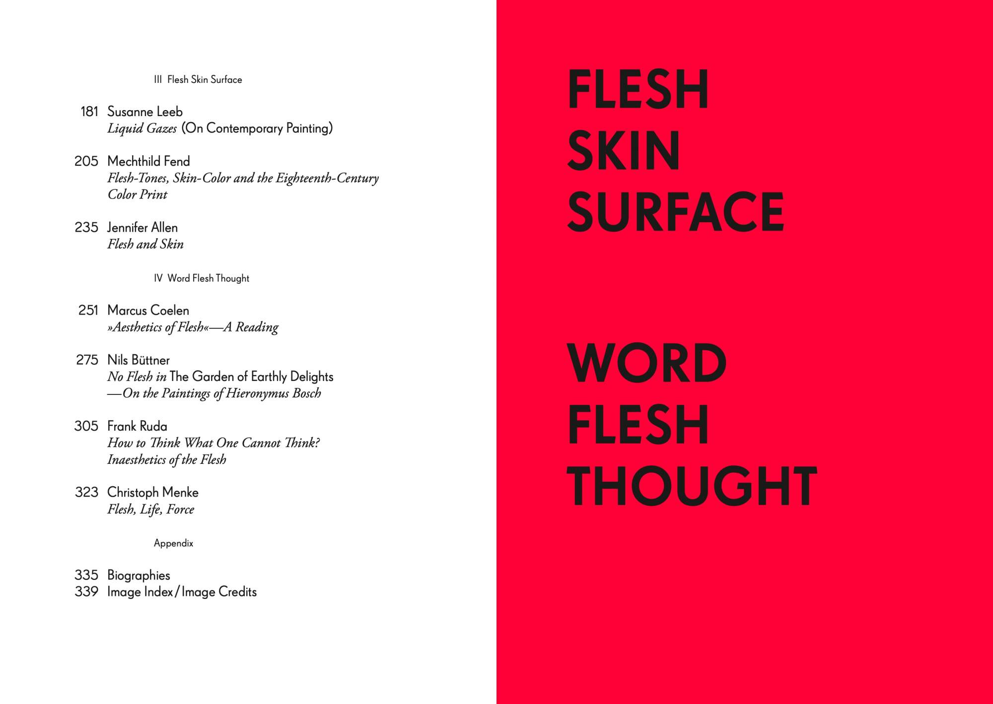 Word becomes flesh, God becomes pigment, beauty becomes empirical form, power negotiates itself in matter—and vice versa: these are some of the connotations carried by the aesthetics of the flesh.