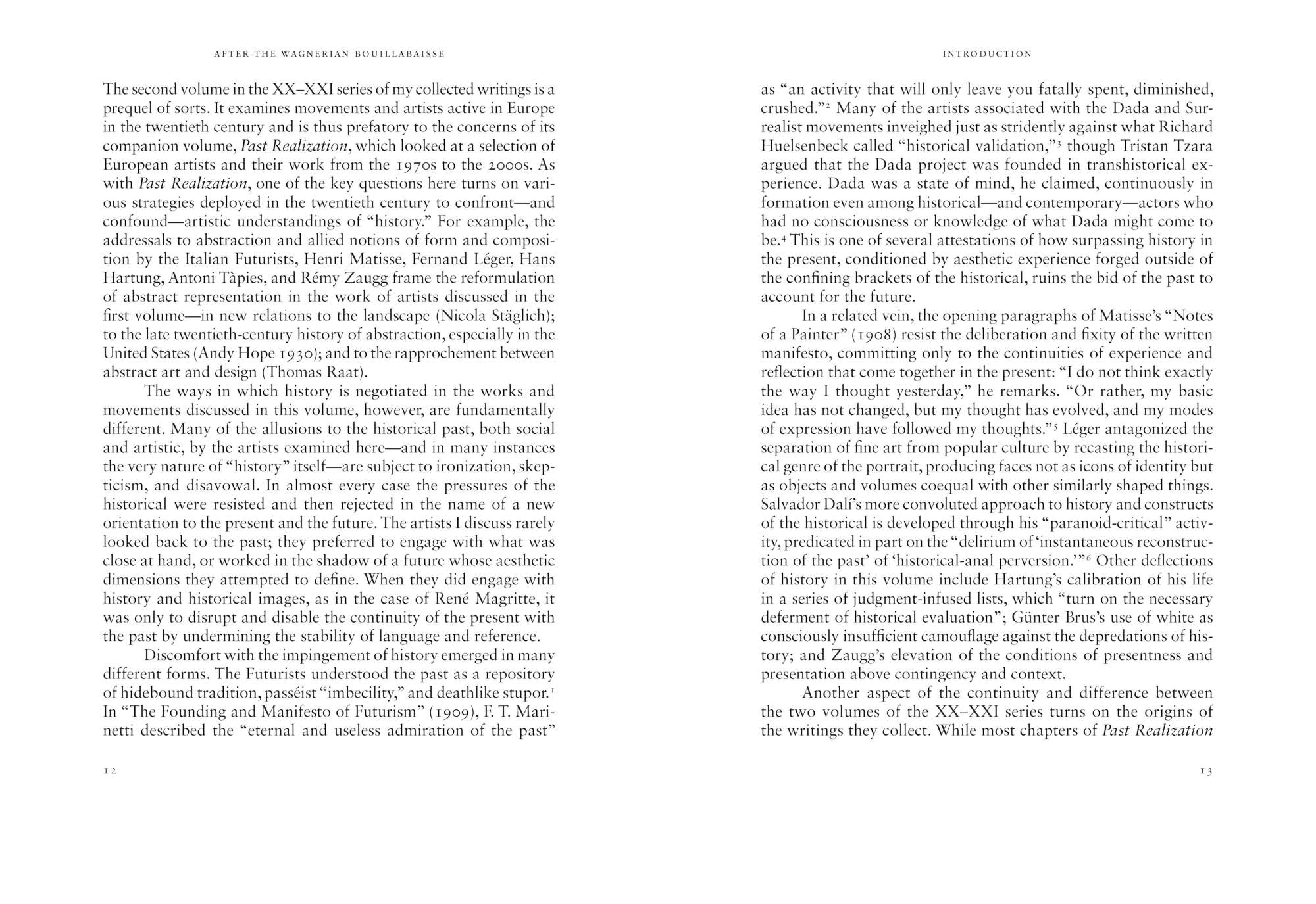 The ten essays in After the Wagnerian Bouillabaisse offer original critical discussions of some of the major European artists and movements of the twentieth century. Borrowing its title from Tristan Tzara’s description of the Gesamtkunstwerk, John C. Welchman’s compelling study begins with a reassessment of Italian Futurism and the unique and disruptively consequential compounding of words and images in Dada and Surrealism. Other chapters cover the production, and circumvention, of affect in the work of Henri Matisse and Fernand Léger; the delirious splits and metaphorical ricochets fired up by Salvador Dalí; and the social and philosophical ideas mobilized by René Magritte. The second half of the volume examines mid- and late-twentieth century artists, comprising a revisionist assessment of Hans Hartung; an analysis of the “turbulent” abstraction of Antoni Tàpies; a deliberation on “whiteness” in the practice and thinking of Günter Brus; and an exploration of postwar exchanges between the United States and the United Kingdom about sculpture. The book concludes with an essay on the relations between writing and seeing in the work of Swiss artist Rémy Zaugg.