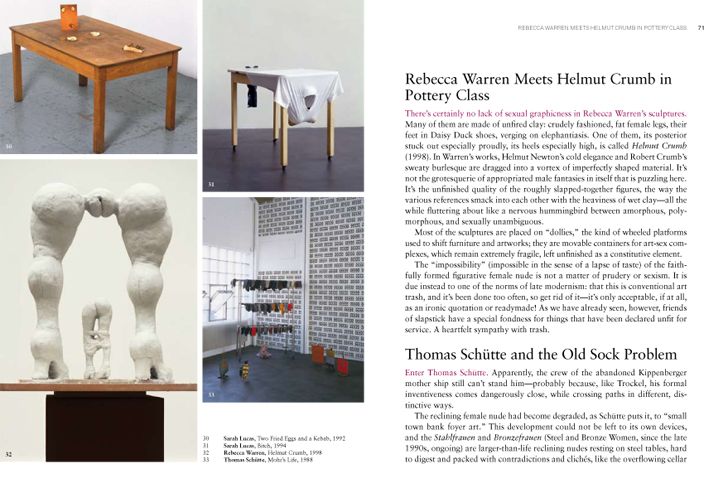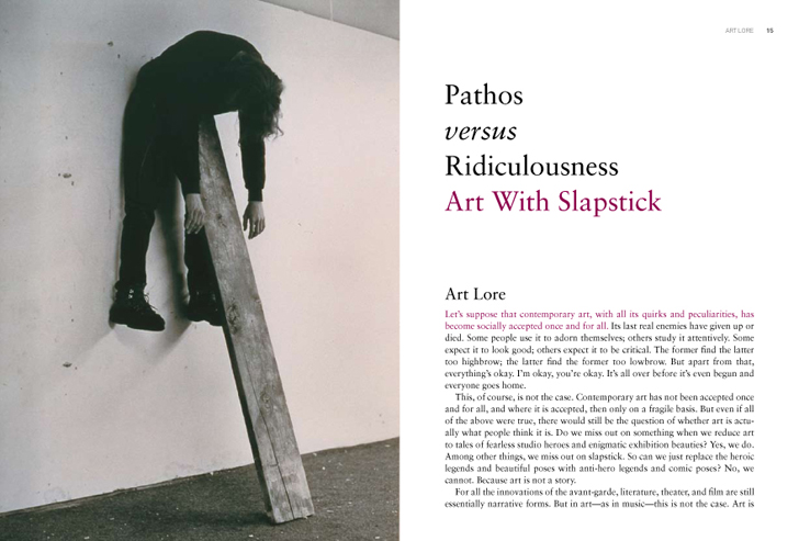 In All of a Sudden: Things that Matter in Contemporary Art, Jörg Heiser provides a sharp summary of contemporary art since Marcel Duchamp. Using many artworks as example, the author shows that art is more than just a randomly chosen cultural field of activity in which to acquire a little specialist knowledge to show off with. “When it’s good,” he claims, “art hits where it hurts, striking at the heart of an ossified status quo by which it itself was brought forth. Perhaps this is something art since Modernism has in common with slapstick. Instead of just aiming to shock and outrage, it shows authority losing its grip. Instead of inflating itself, it deflates the pompous in the name of art.”