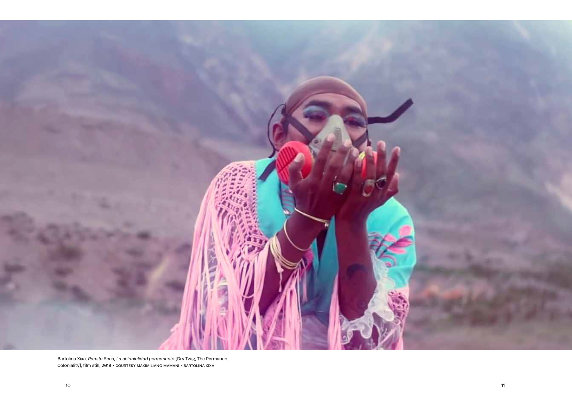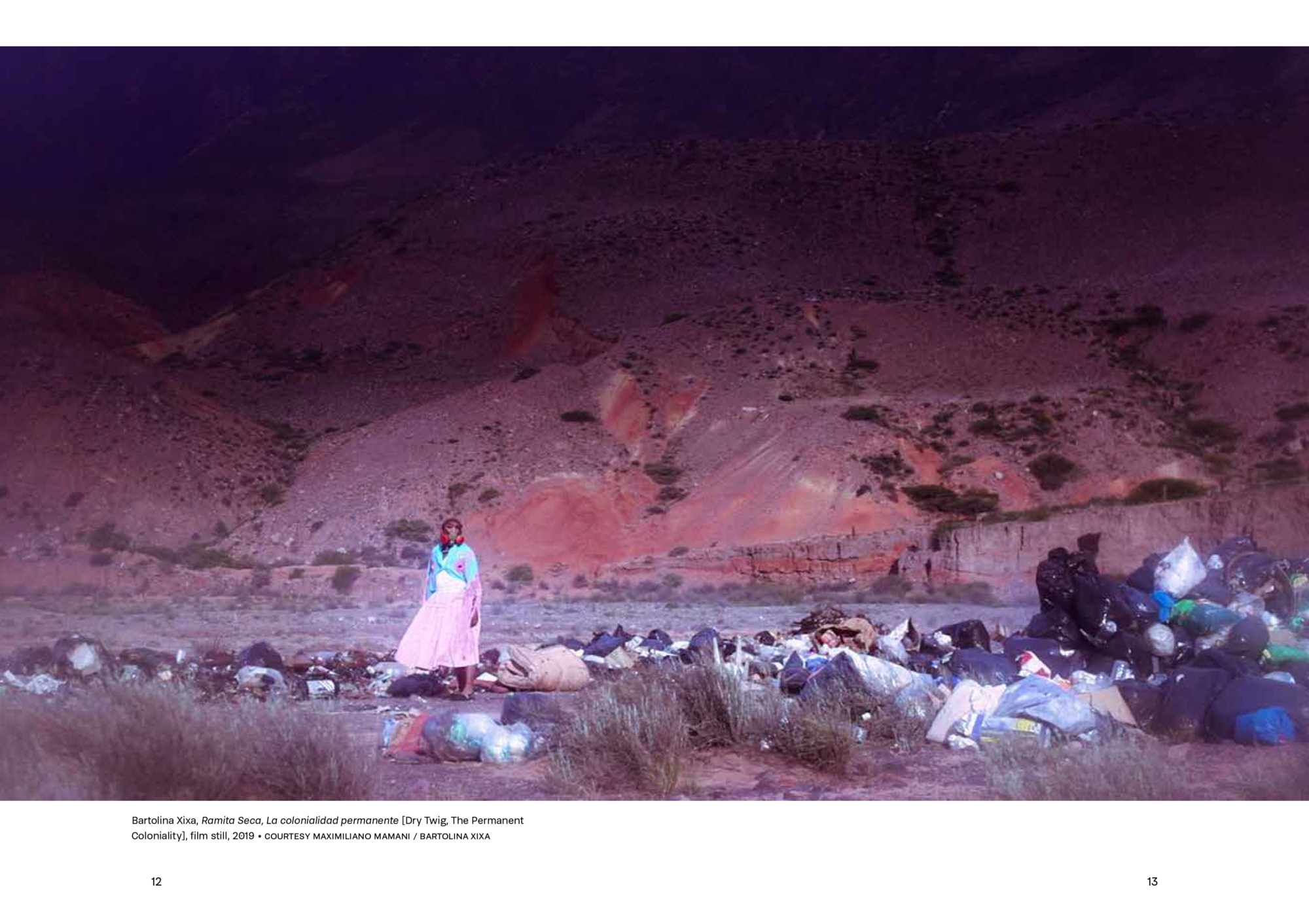 The exhibited works and written contributions reflect on the rationale of exploitation, the fast-paced mining of raw materials, and environmental destruction as a colonial legacy. They deconstruct Western anthropocentric models and enduring colonial and racist discourses, trace the stories of indigenous struggles for collective survival, and celebrate encounters defined by solidarity in their resistance to capitalist extraction, misogyny, imperialist violence, and dispossession.