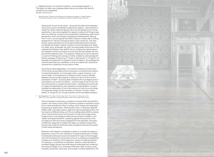 As an accompaniment to the exhibition, the catalogue Olafur Eliasson: Baroque Baroque examines some of the trajectories of thought raised by the encounter between Eliasson’s artworks and their temporary baroque housing: in particular, how transformations of space, perception, and cognition reflect the realms of politics, technology, and the Anthropocene.