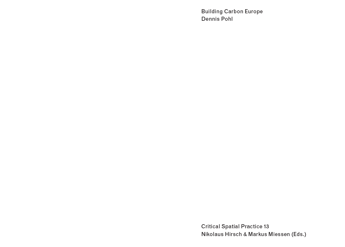 In this volume of the Critical Spatial Practice series, Dennis Pohl locates the origin of Europe's dependency on carbon and nuclear power in the postwar architectural designs and energy policies of the European Community. Since the 1950s, architects have proposed territorial, regional, and urban development plans that served the European political project. They collaborated with the European Coal and Steel Community in an effort to render the steel building industry as efficient as the car industry; they incorporated the ideas of infinite nuclear energy, as promoted by the European Atomic Energy Community, into their designs.