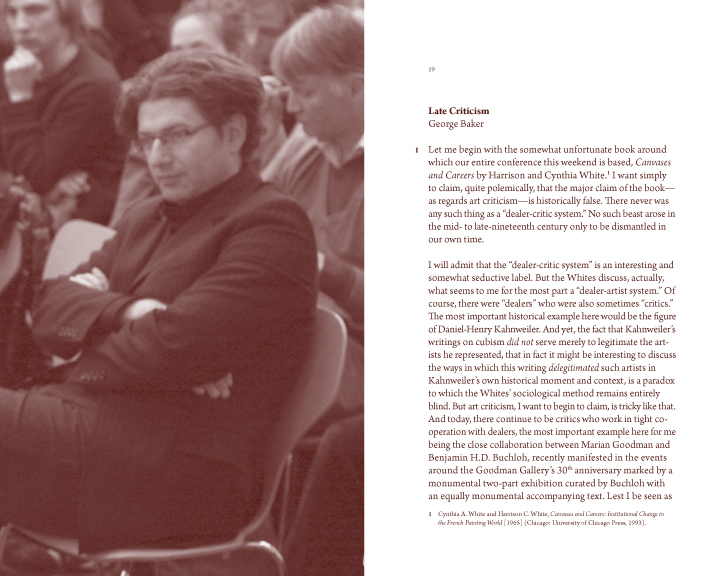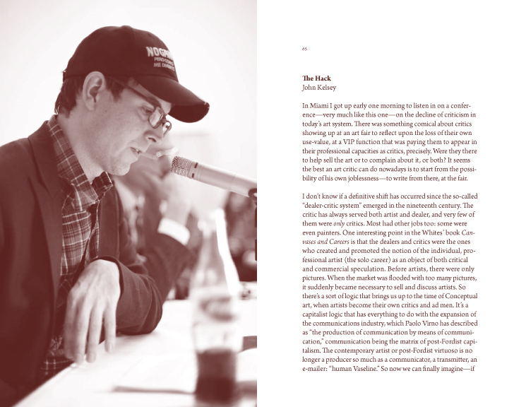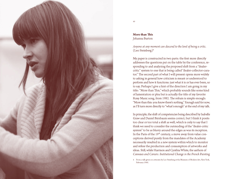 “It was especially interesting for us to watch a kind of transatlantic divide happening. While the US-American participants mostly declared criticism as obsolete while hoping for turning its weakness into a strength, most European participants departed from the opposite diagnosis: that criticism has never been as strong as it is today, since it is now part of a knowledge-based economy.” —Isabelle Graw & Daniel Birnbaum