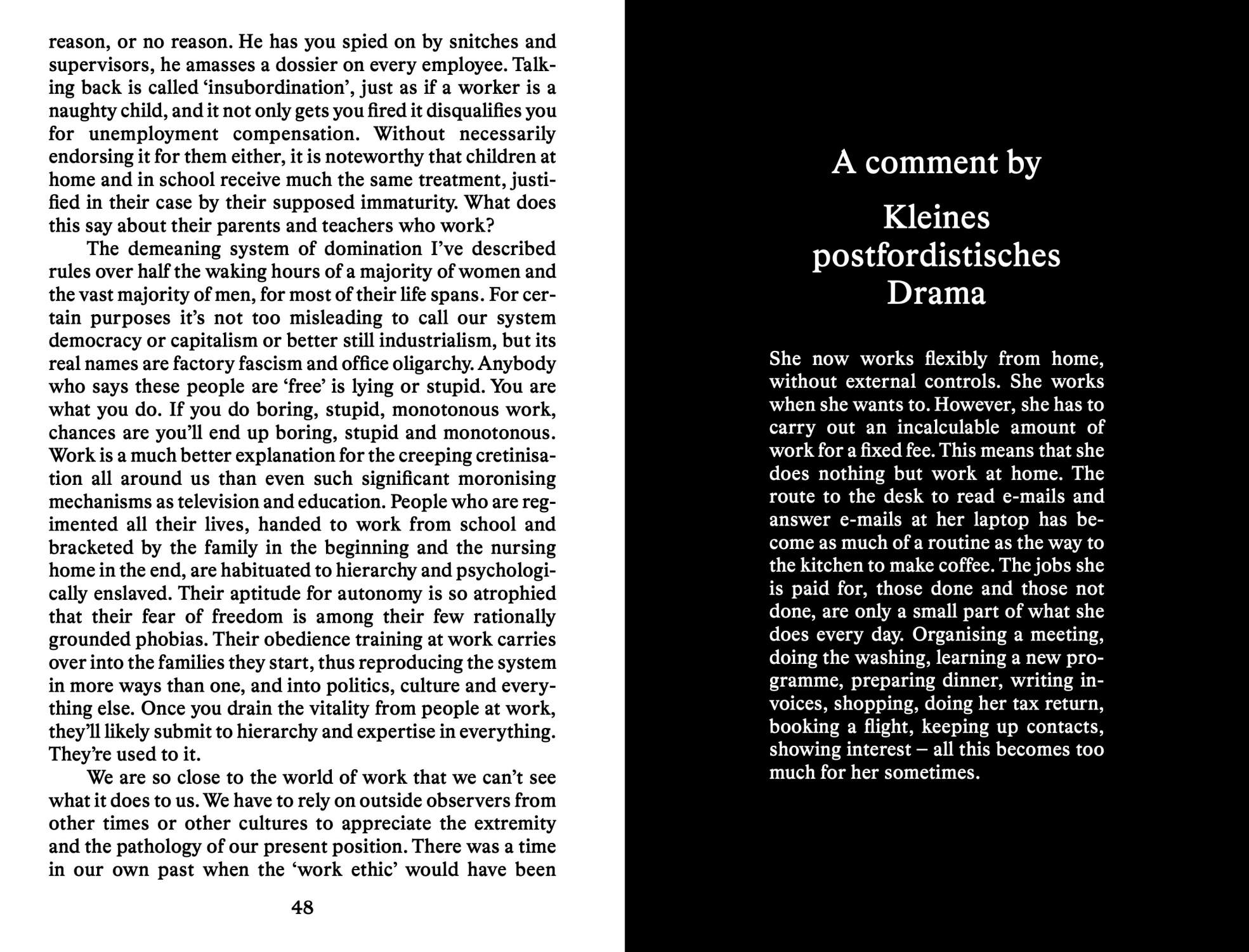 By taking the idea of playing and the metaphor of the game as a starting point, the publication addresses what might be called a “ludic turn”—the impact of the notion of play and gaming methods in various research fields and cultural work. Most prominent in the Internet industries and interactive media landscapes, but also in theoretical reflections, historical research, and the work of artists and designers, we are experiencing an interest in play as an educational tool or model for participation. However, with the conscious exception of the game per se, the publication attempts to trace its current impact and critical capacity, and explores various notions as well as concrete modes of play including activities such as learning, sharing, and group work, in relation to space, art, and design. It is driven from a methodological interest in the structure of playing, in its dialectics of rules and possibilities, planning and non-planning, collectivity and individuality. A game, in this sense, is not only characterized by its rules—or, on the contrary, by the liberty of the playing individuals—but is rather a construction of conscious interaction, application and transgression.