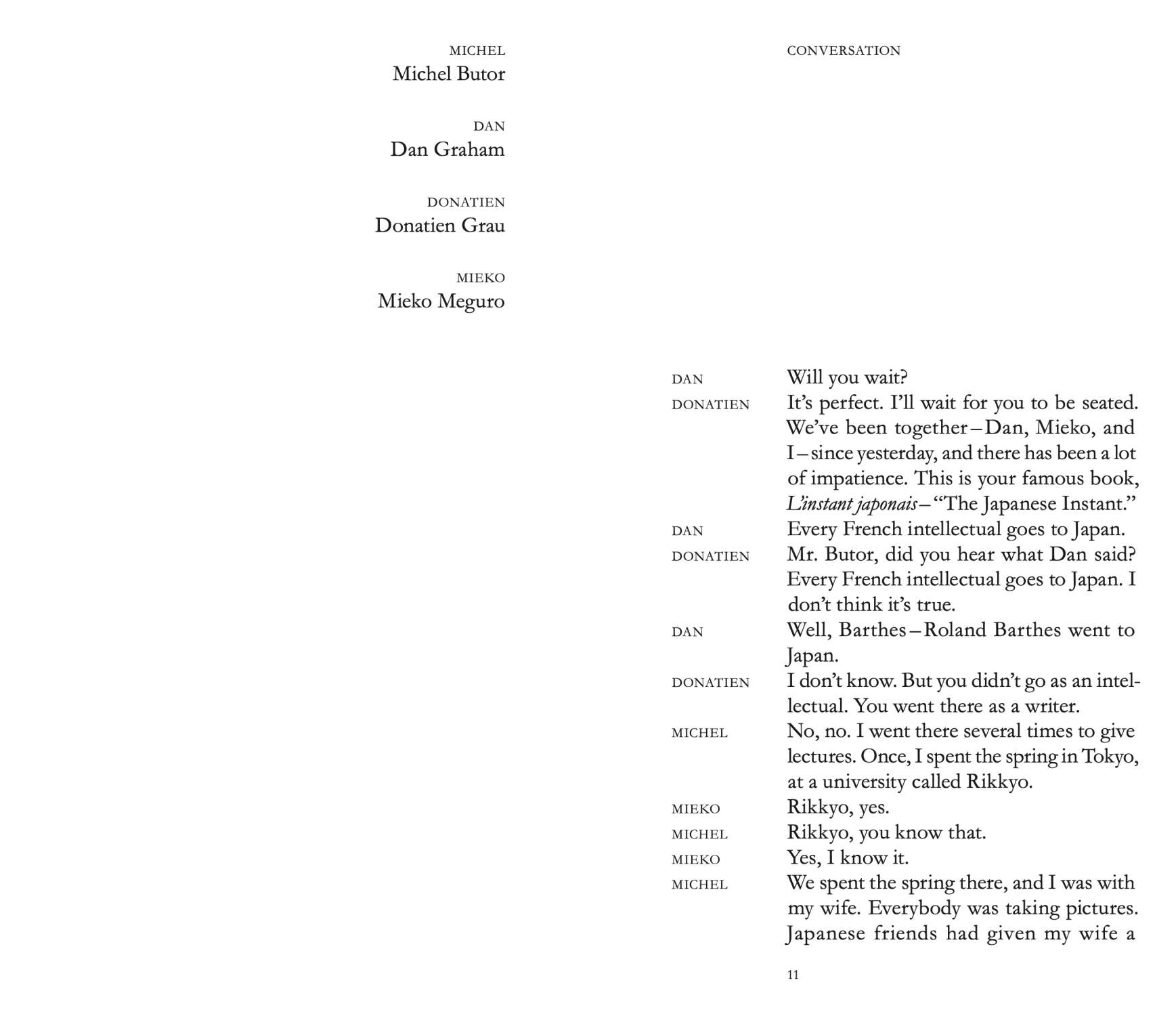 In the fall of 2013, Dan Graham and Mieko Meguro traveled with Donatien Grau to a town in the French Alps to meet Michel Butor, one of the foremost innovators of postwar literature. This is their conversation.