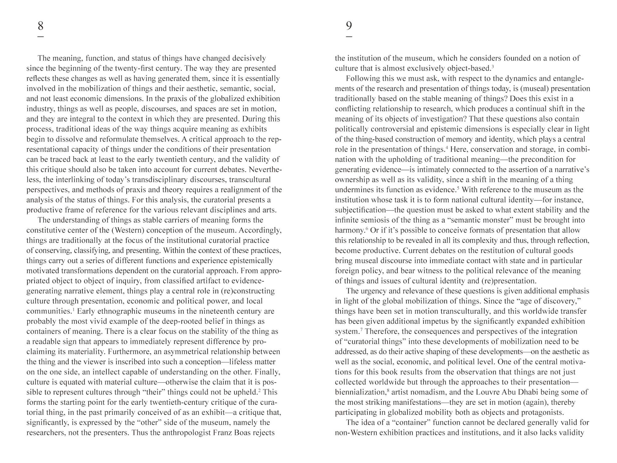 The meaning, function, and status of things have changed decisively over the past two decades—a development that stems from increasing skepticism about the ability of things to present culture. This questioning of thingness is an integral part of presentation and has shaped the relevance of the field of the curatorial. Immanent to presentation as a mode of being (public) in the world, the curatorial has the potential to address, visualize, and investigate the central effects of the changing status and function of things. The presentational mode has played a generative role, vitally participating in the mobilization of things through its aesthetic, semantic, social, and, not least, economic dimensions. Intertwining transdisciplinary discourses, transcultural perspectives, and methods of practice, the anthology Curatorial Things provides new insight into the analysis of things.
