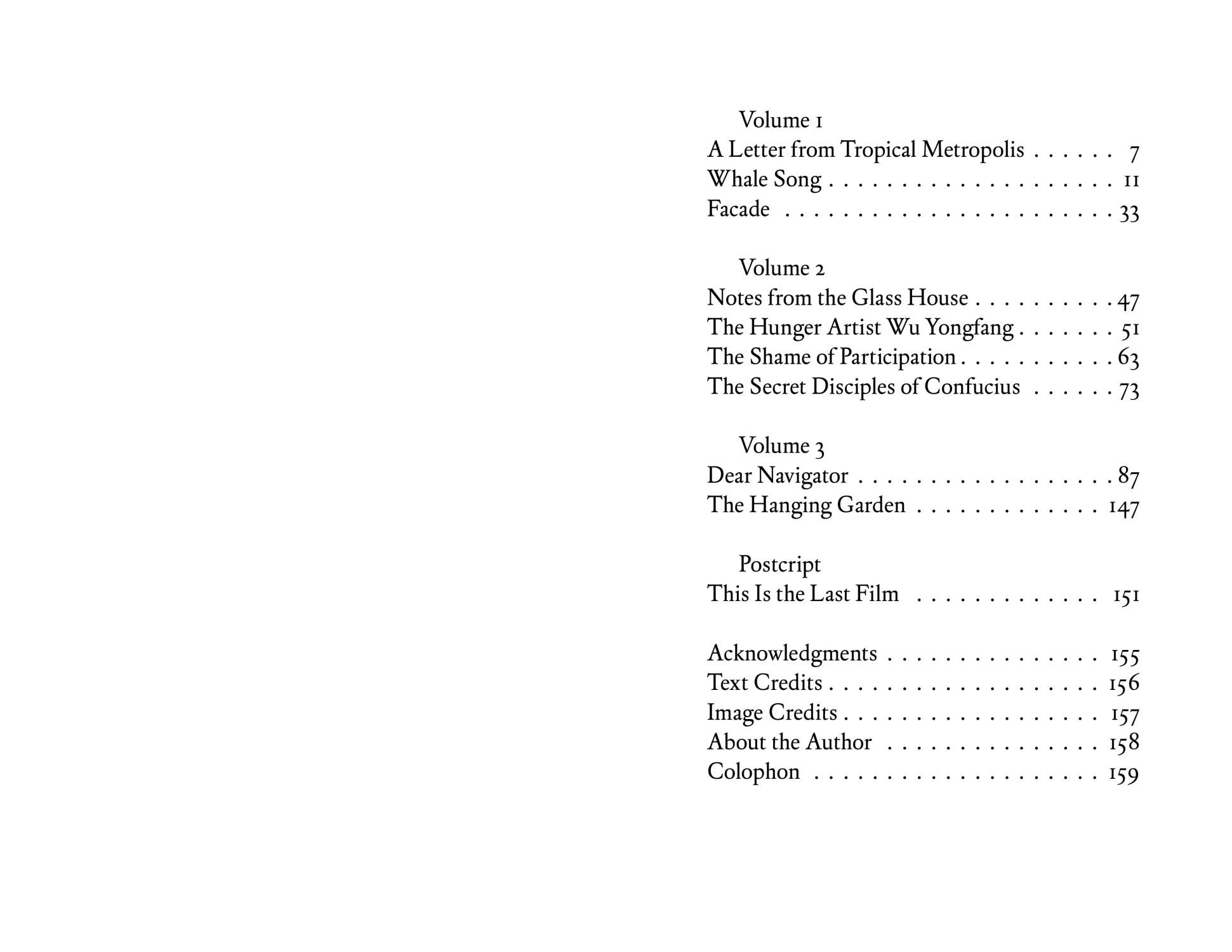 Hu Fang is a fiction writer and cofounder of Vitamin Creative Space, Guangzhou, and The Pavilion, Beijing. He lives and works in Guangzhou and Beijing. Previously published titles include Troubled Laughter (2012), Garden of Mirrored Flowers (2010), and Pavilion to the Heart’s Insight (2008). His stories have been published in e-flux journal, Manifesta Journal, and various publications including Ming Wong: Life of Imitation, Drone Fiction, Odyssey: Architecture and Literature, and Gwangju Folly.