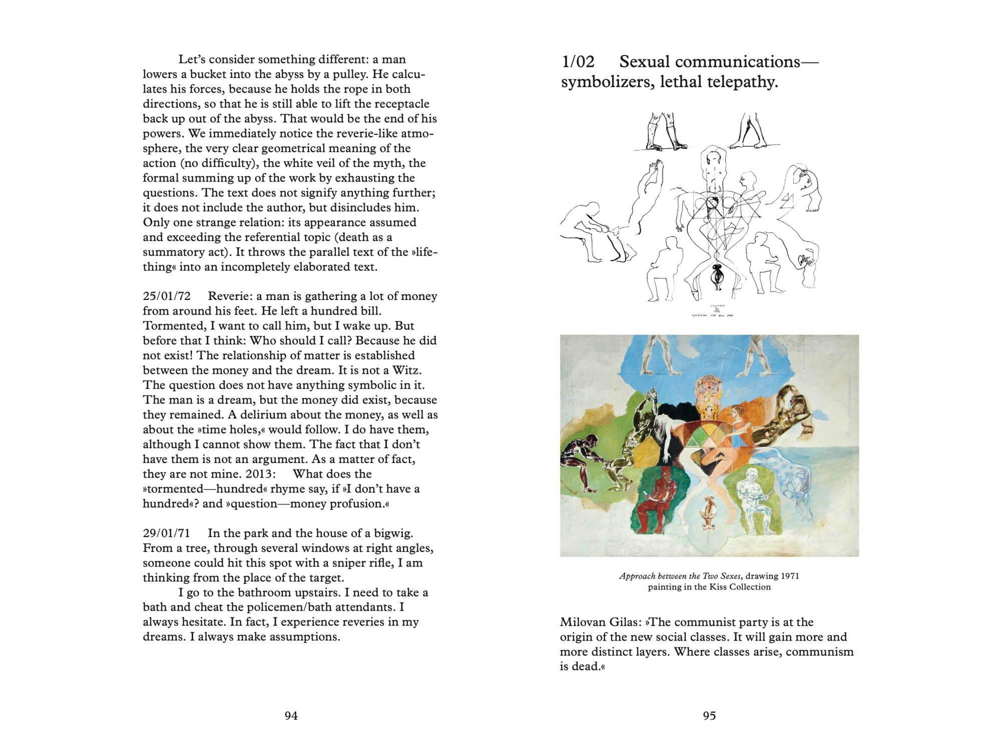 In poetic language full of powerfully pictorial metaphors, Grigorescu reflects on his observations of the tension between the realistic effects of the image, the suppression of realism, and the hidden traces the gaze holds through the activities of the increasingly present unconscious of collective memory. Along with the drawings, paintings, photographs, and sketches that accompany them, the diaries serve as an introduction that opens up the possibility of conceiving Grigorescu’s art as a rare evocation of a singular way of thinking: a stance.