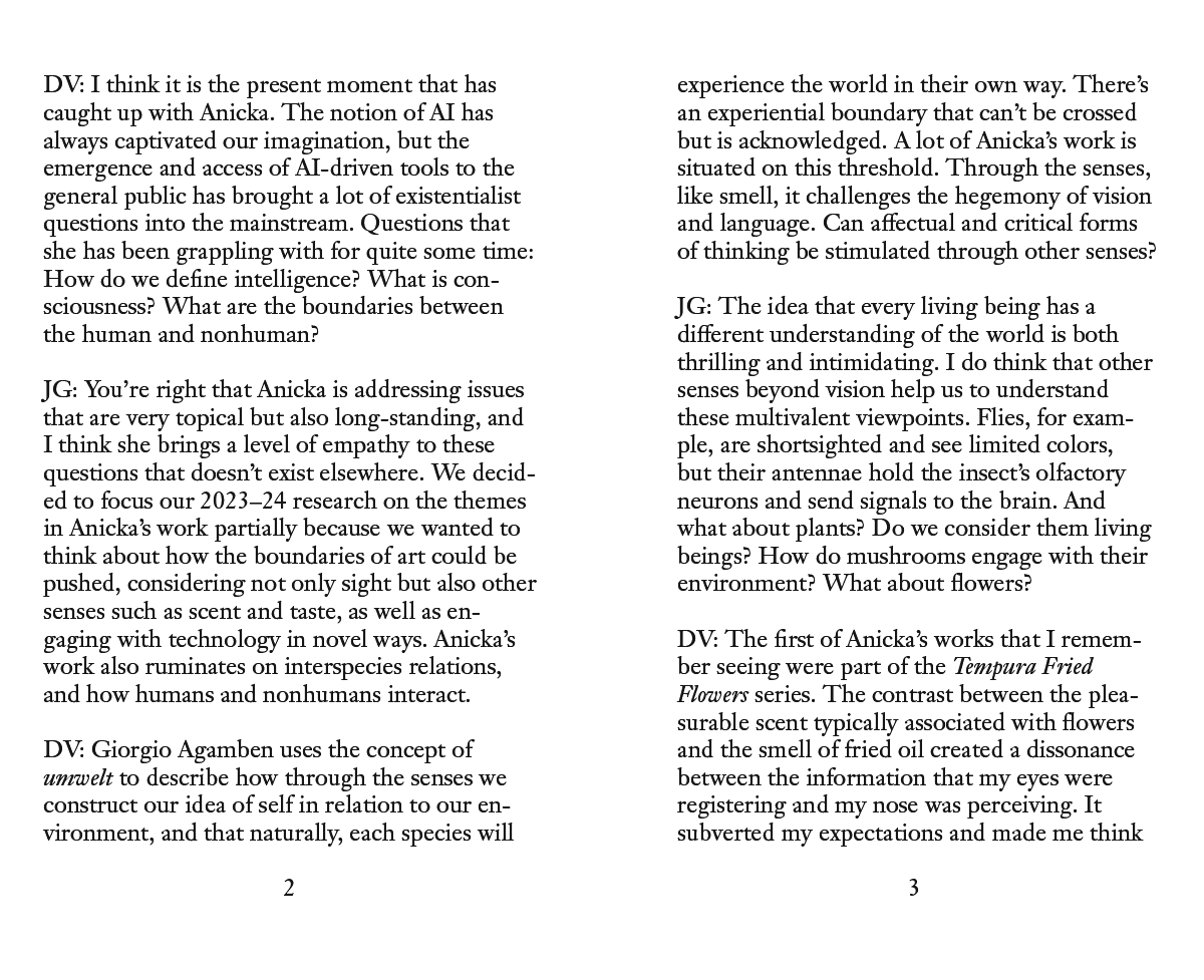 This is the fifth book in the annual A Series of Open Questions published by CCA Wattis Institute for Contemporary Arts and Sternberg Press. Each book includes newly commissioned writing as well a selection of perspectives, images, and references related to the Wattis’s year-long research seasons dedicated to single artists. This volume is informed by themes found in the work of Anicka Yi, such as AI, umwelt, scent and taste, the anthropocene, decay and rot, the animal world, feminism, and Asian American experiences. Contributions include a cocktail recipe by Pierre Huyghe, an academic essay on psychedelic mushrooms in Native American culture, and a short story by Argentinian author Julio Cortázar, along with photographs and drawings relating to the themes. Through an eclectic range of international voices, the book encompasses many mediums in an attempt to address some of the most pressing issues of our time.