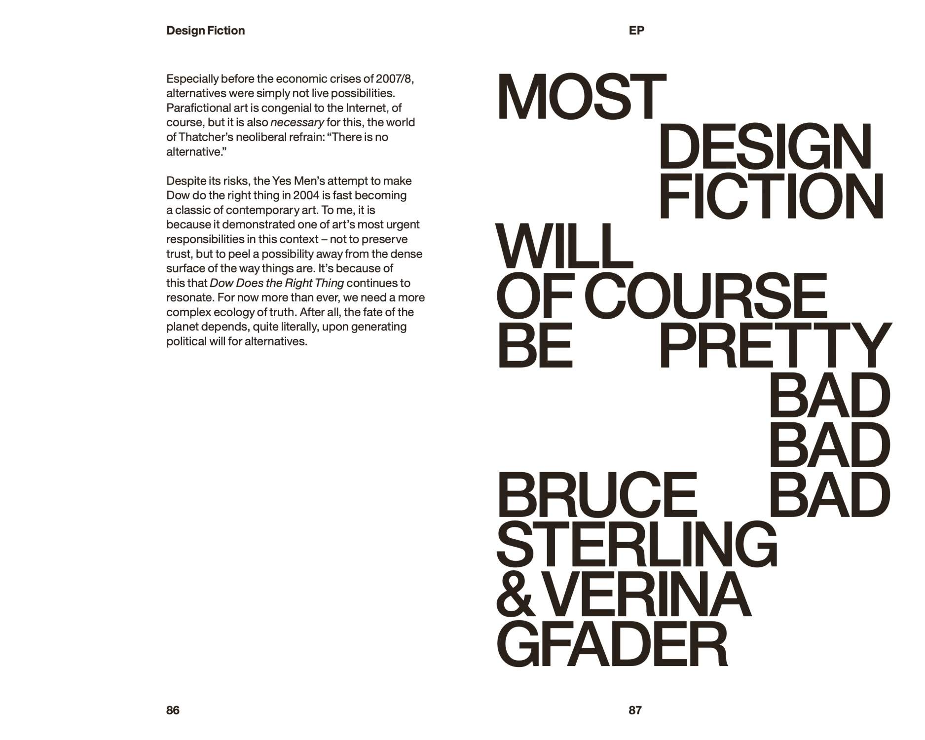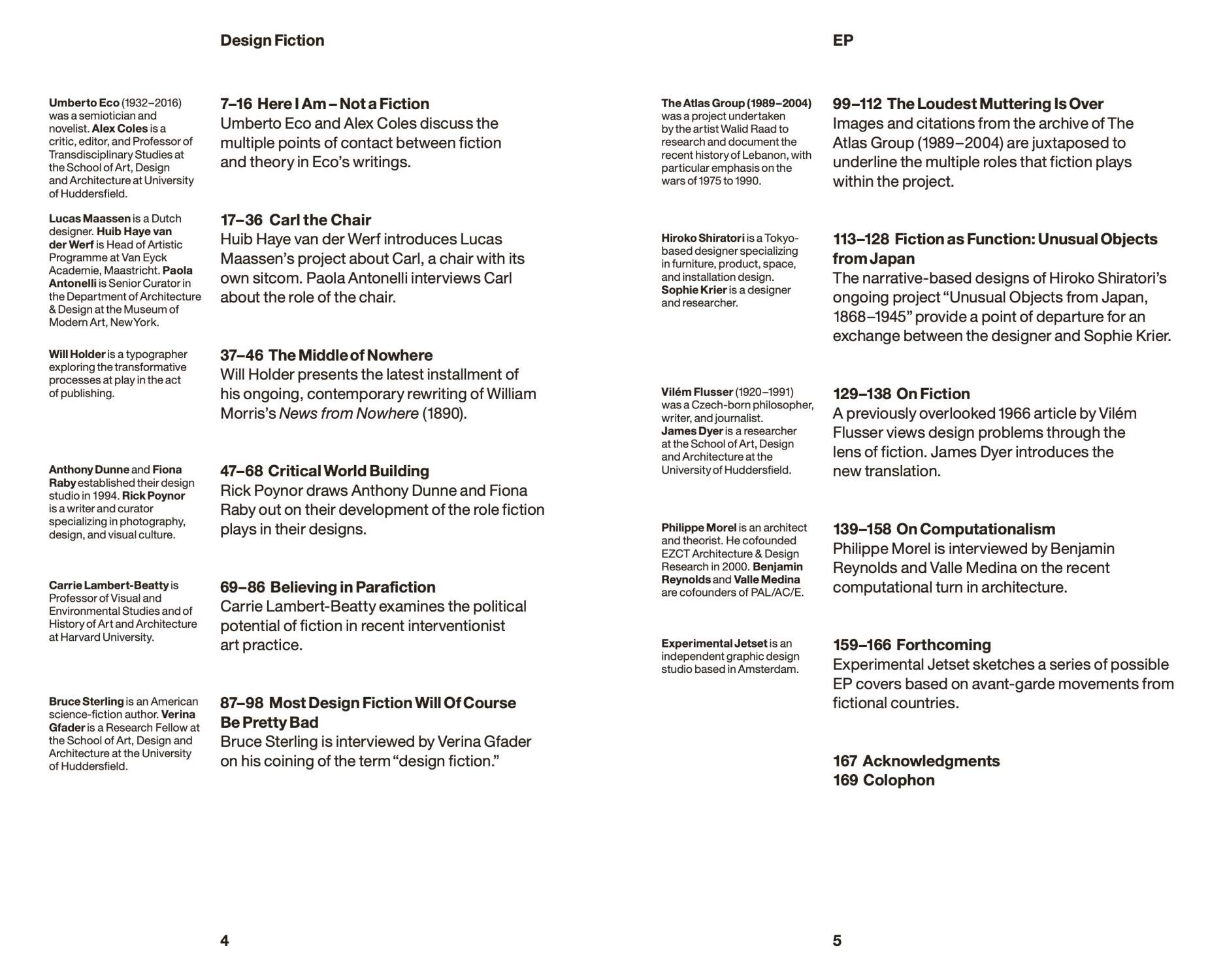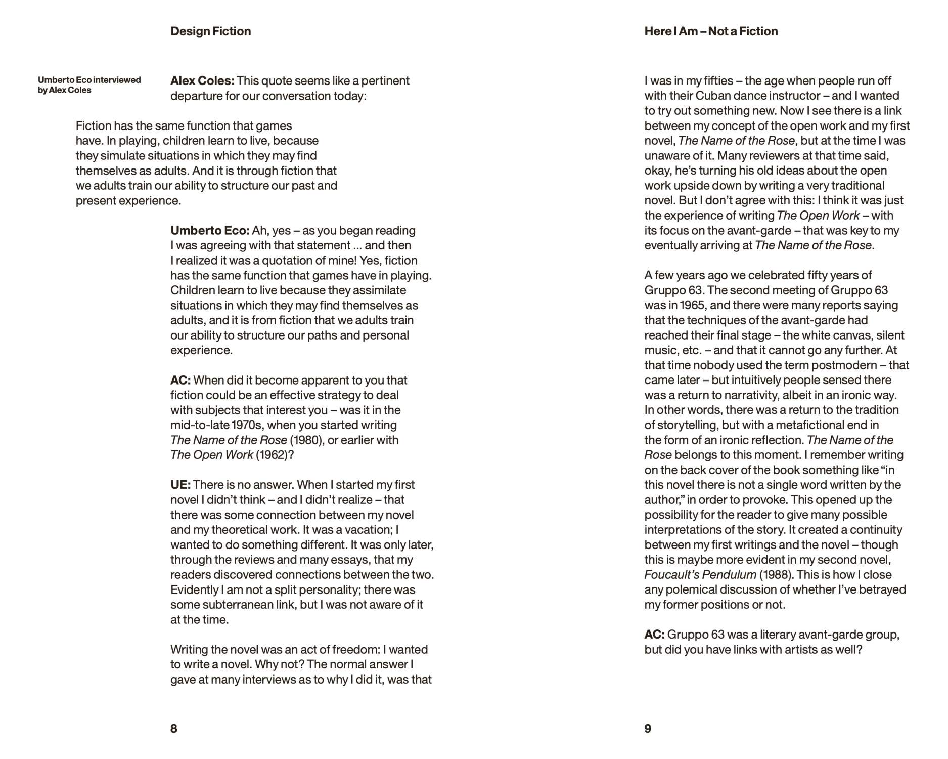 After the first EP volume on the activities of the early Italian avant-garde, the second volume in the series identifies the current fascination with fiction across art, design, and architecture. Practitioners and theorists explore this strategy by pushing the debate into both speculative and real-fictitious terrains. Newly commissioned interviews, artist projects, and essays shed light on topics such as parafiction and algorithmic ambiguity. Included in the volume is one of the final interviews to be published with novelist and semiotician Umberto Eco; a conversation with Bruce Sterling, in which the science-fiction author responds to designers who reference his writings; and design theorist Vilém Flusser’s 1966 essay “On Fiction,” in its first English translation.