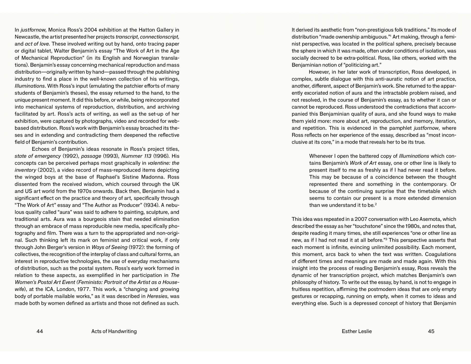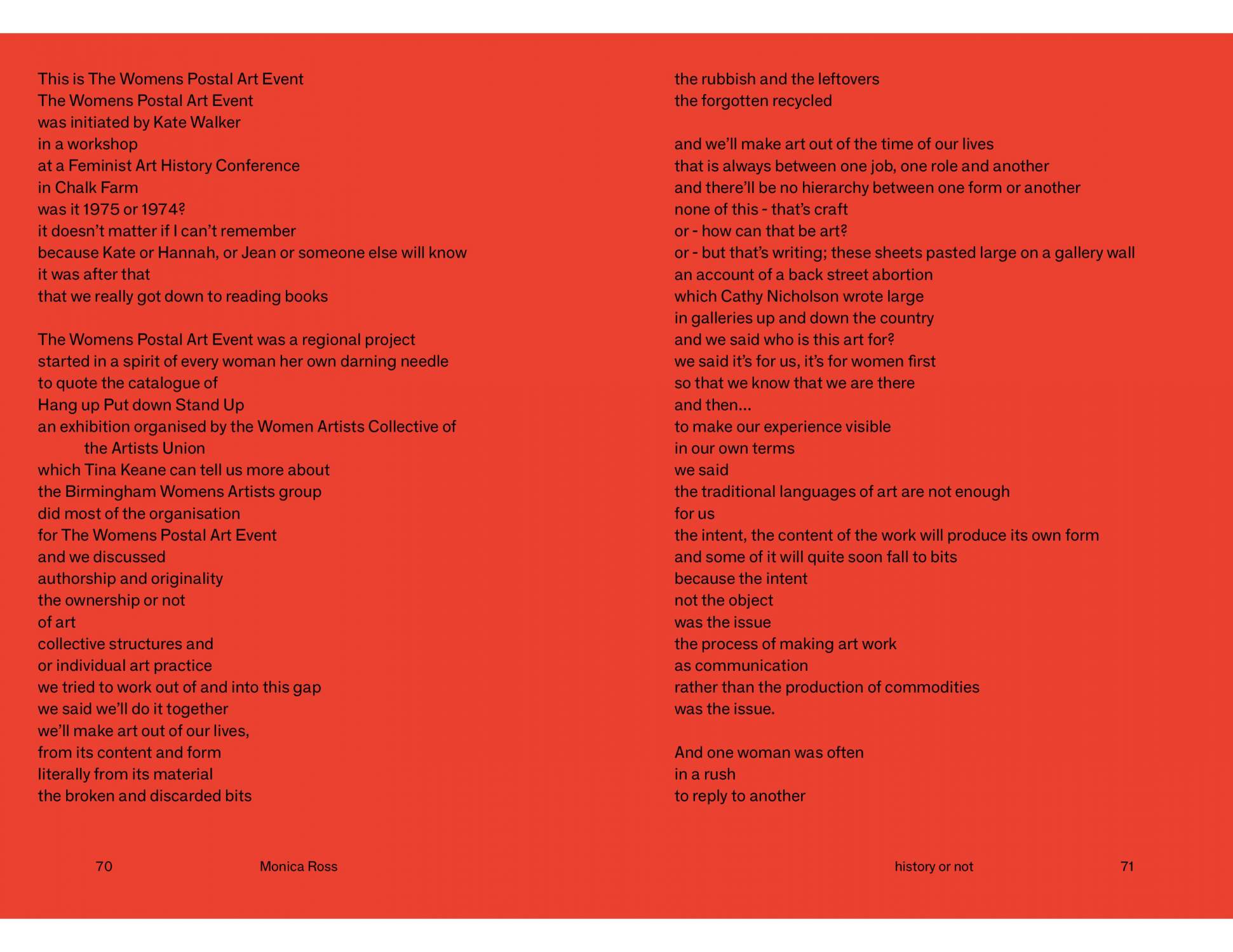 British artist Monica Ross (1950–2013) left behind forty years of socially engaged, feminist, and performative artwork, which has had a deep effect on contemporary art and society. This fully illustrated publication documents Ross’s works from 1970 to 2013, including early feminist collaborative works, drawings made at the Greenham Common Women’s Peace Camp in the 1980s, poster designs for the antinuclear movement, works relating to the writings of Walter Benjamin, and documentation from the sixty performances of Anniversary—an act of memory (2008–13), solo, collective, and multilingual recitations from memory of the Universal Declaration of Human Rights, which concluded with a final collaborative performance at the UN in Geneva on the day of Ross’s death. With essays by Esther Leslie, Eric Levi Jacobson, Alexandra M. Kokoli, Denise Robinson, and Yve Lomax, this book is a valuable art-historical document.