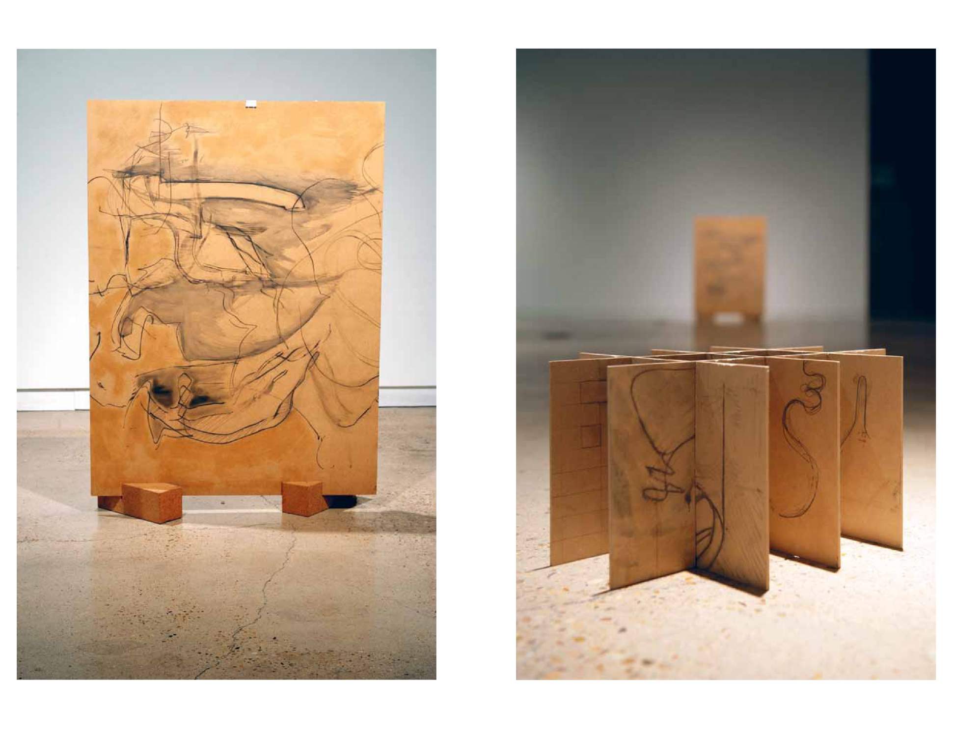Although deeply grounded in drawing, J. Parker Valentine’s diverse practice spans film, video, photography, collage, and sculpture. By pushing the limits of mark making, the many possibilities of narrative and image are encountered and explored. The drawn line exceeds its supports and materials, extending beyond the two-dimensional edges of material to something more sculptural. In the same way that Valentine uses erasure to create an image, the negative space or ephemeral material within a space, such as shadow and light, becomes part of the work.