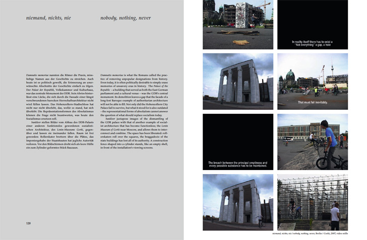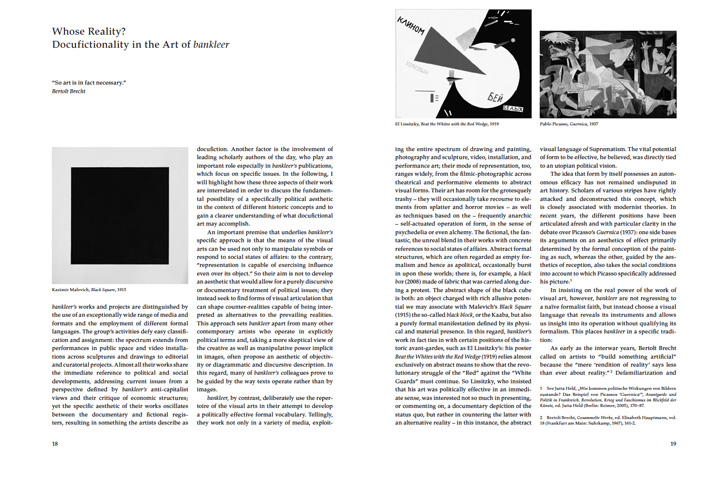 bankleer’s works and projects are distinguished by the use of an exceptionally wide range of media and formats and the employment of different formal languages. The group’s activities defy easy classification and assignment: the spectrum extends from performances in public space and video installations, through sculptures and drawings, to editorial and curatorial projects. Almost all their works share an immediate reference to political and social developments, addressing current issues from a perspective defined by bankleer’s anti-capitalist views and their critique of economic structures. This monograph features in depth essays on the collective’s work as well as an annotated image section, which highlights bankleer’s recent projects and deployments.