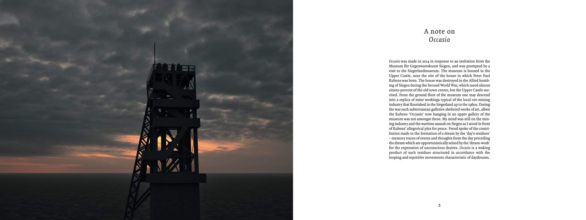 Victor Burgin’s Five Pieces for Projection introduces recent projection work from 2010 to 2014, and coincides with the artist and writer’s retrospective exhibition “Forms of Telling” at the Museum für Gegenwartskunst Siegen. Each of the five projections presented in the catalogue is accompanied by a text by Burgin that discusses how the work emerges from a personal experience, a preoccupation with a building, a place, or a Romantic painting.