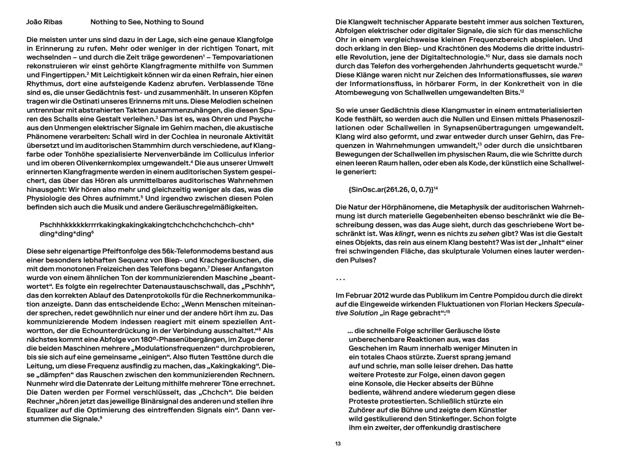 The publication includes a curatorial introduction by Christian Egger, and a comprehensive essay by the author and curator of the Serralves Museum of Contemporary Art, Porto, João Ribas. The cover was designed by Florian Hecker using an objectness measure algorithm.