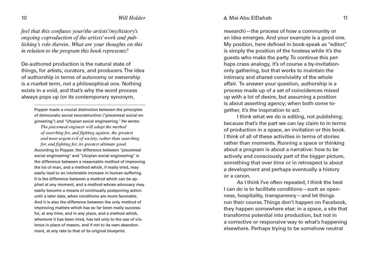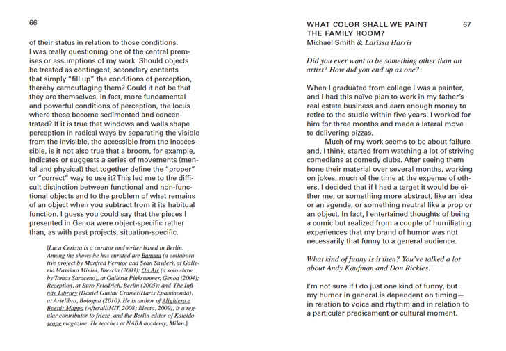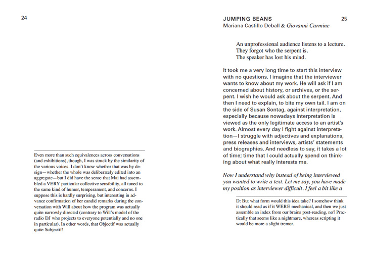 The publication includes a series of interviews with artists who exhibited at Objectif Exhibitions, Antwerp, over a two-year period, along with a collection of secondary and parallel material produced in collaboration with each artist. Ranging from the humorous to the pseudo-scientific, the artists discuss the methods by which their research is transformed into practice. Both the artists and the interviewers constitute a community of active and concerned arts practitioners who, through art-making, writing, curation and teaching, deal with issues of representation, behavioral patterns and historical legacy.