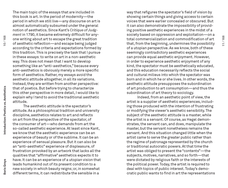 Boris Groys is Professor at New York University and Senior Research Fellow at the Academy of Design, Karlsruhe. He is the author of many books, including The Total Art of Stalinism, Ilya Kabakov: The Man Who Flew into Space from His Apartment, Art Power, The Communist Postscript, and History Becomes Form: Moscow Conceptualism.