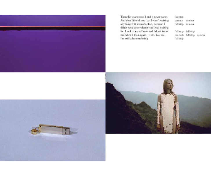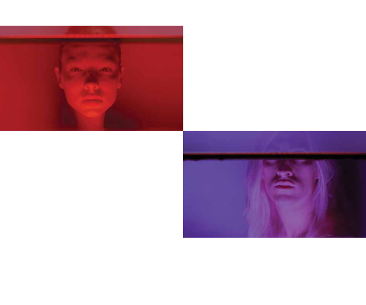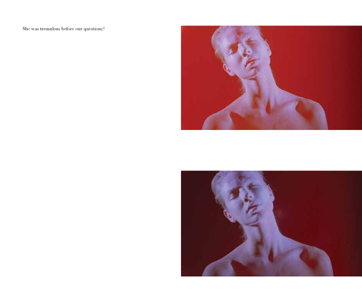 Gonda is informed by Ayn Rand’s 1934 play Ideal. In the play’s script, controversial Russian American writer and philosopher Rand lays out her philosophical system of “Objectivism” with its stubbornly anti-altruistic and individualistic position. As a critical counter to Rand, Gonda creates kaleidoscopic printed spaces in which image and text shift roles to affect presupposed ideals of identity and existence. Noting how the cinematic image actually gazes back on us, the book utilizes highly stylized and precisely composed full-color imagery, and features Dutch transgender model Valentijn de Hingh.