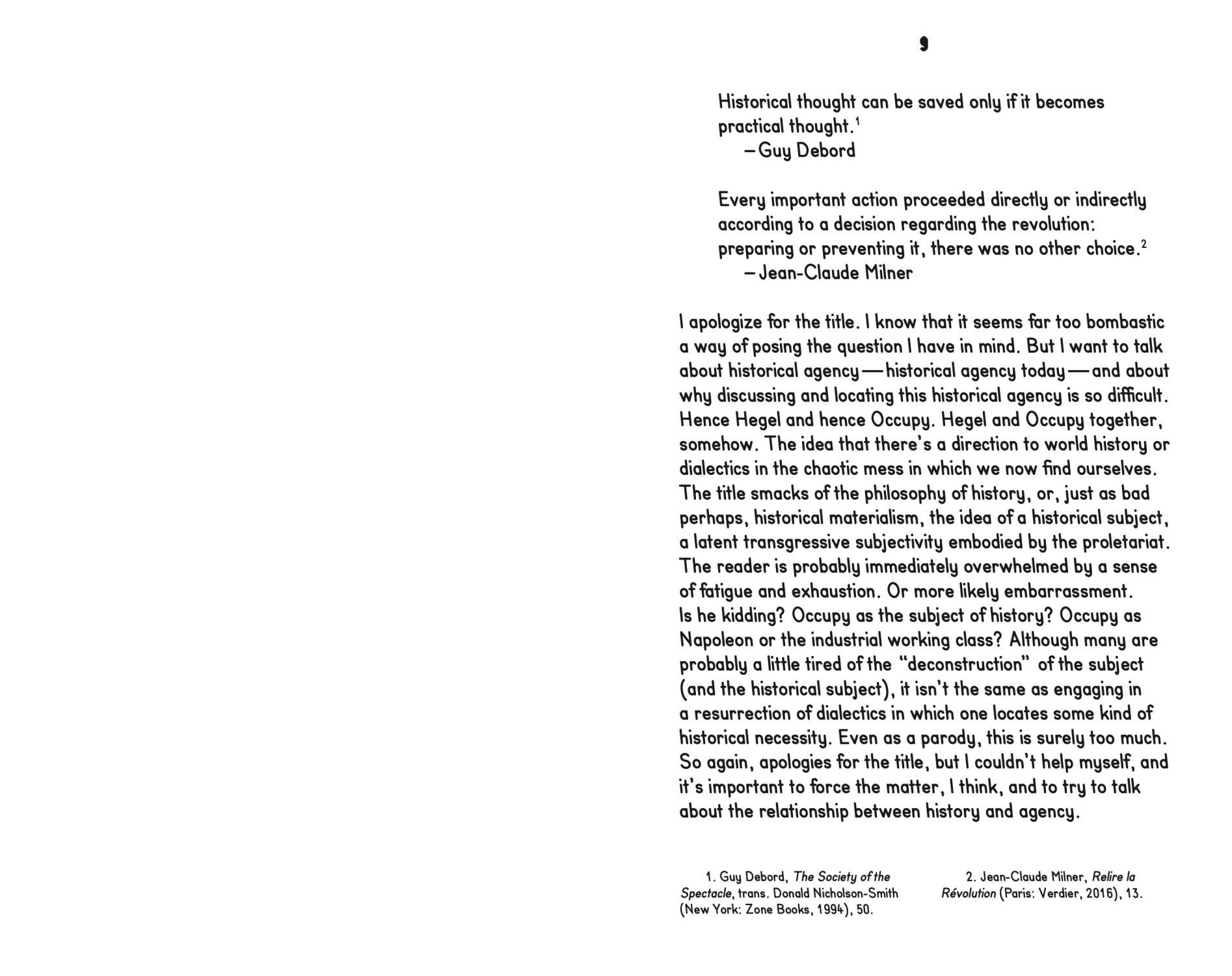 The ninth volume of the Contemporary Condition, Hegel after Occupy is a Western Marxist analysis of different attempts to understand the present historical situation and the way theories of postmodernity, globalization, and contemporaneity implicitly or explicitly conceptualize the relationship between the historical present and political action. They all persuasively describe a breakdown of former historical categories but paradoxically end up understanding this breakdown as the end of politics tout court. Analysis and “position” thus merge, and the analytic diagnosis of a disavowal of the future (and the past) ends up as a disavowal of politics.