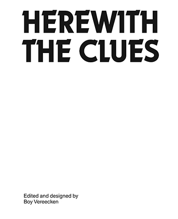 Herewith the Clues continues Boy Vereecken’s research into mass-market literary culture, which began with Signature Strengths (2016). The volume includes two text contributions: a contemporary take on the whodunit novel by Shumon Basar, followed by a tour of the history of the Crime Dossiers by Laura Herman. The book is illustrated with a photo series from Antoine Begon who has unpacked and photographed the pieces of evidence that comprise Crime Dossiers such as File on Rufus Ray and Murder Off Miami.