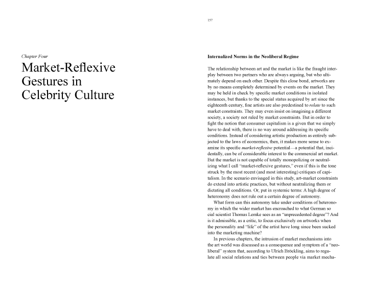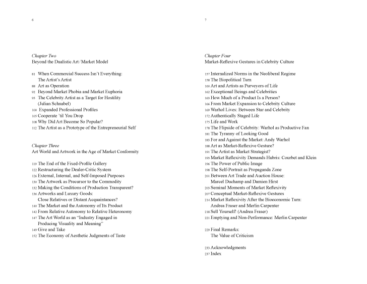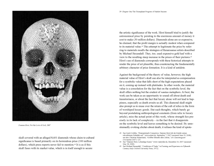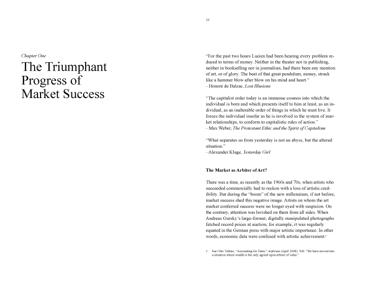 This book provides numerous examples to support the first claim of a massive growth in the defining role of the market and its players during the art boom, who also increasingly have a say in establishing artistic value. There is indeed much to suggest that in recent years, whether or not an artwork was considered relevant in artistic terms depended to a greater extent on its market value. But this market value still depends on a “symbolic value” for its ultimate legitimacy. Without symbolic value, no market value—this is the book’s second claim. For if it is true that society has been changing since the 1970s from industrial capitalism into what Antonio Negri has called “cognitive capitalism,” then under such conditions, increased importance would once more be accorded to the symbolic meaning of an artwork. The art world is by definition a knowledge society, even if the spell of commercial success has long held sway over it.