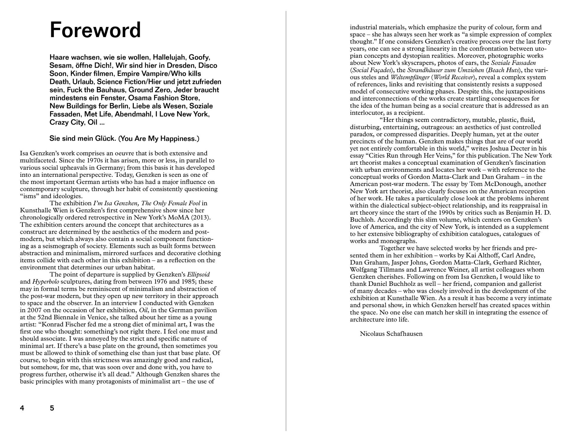 Copublished with Kunsthalle Wien on the occasion of Isa Genzken’s exhibition “I’m Isa Genzken, the Only Female Fool,” May 28–September 7, 2014.