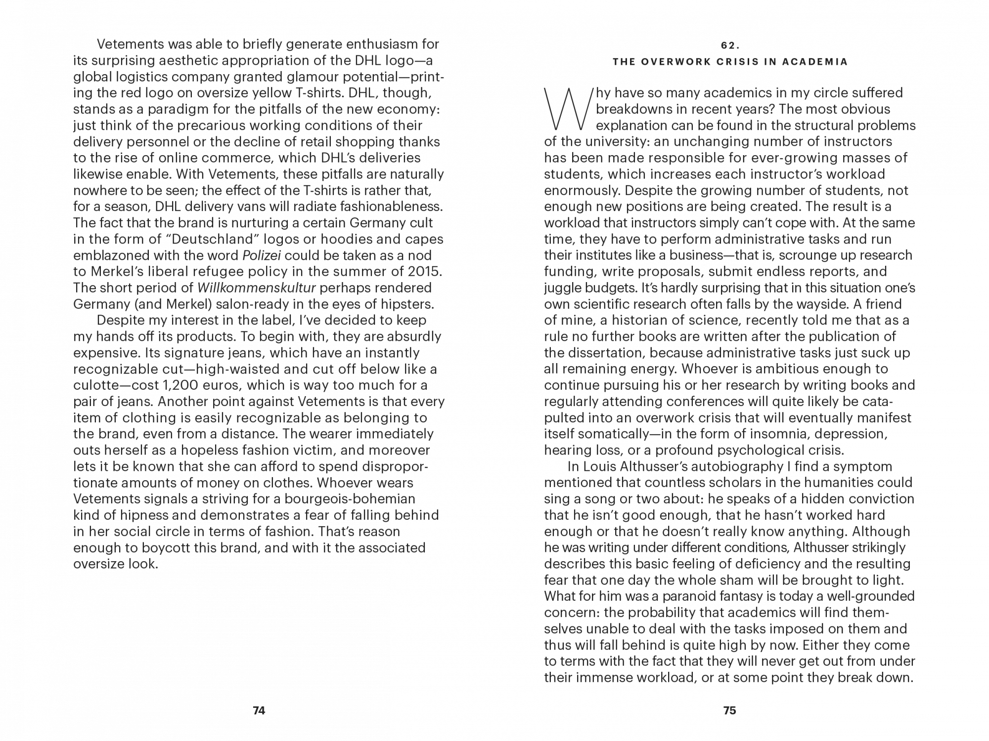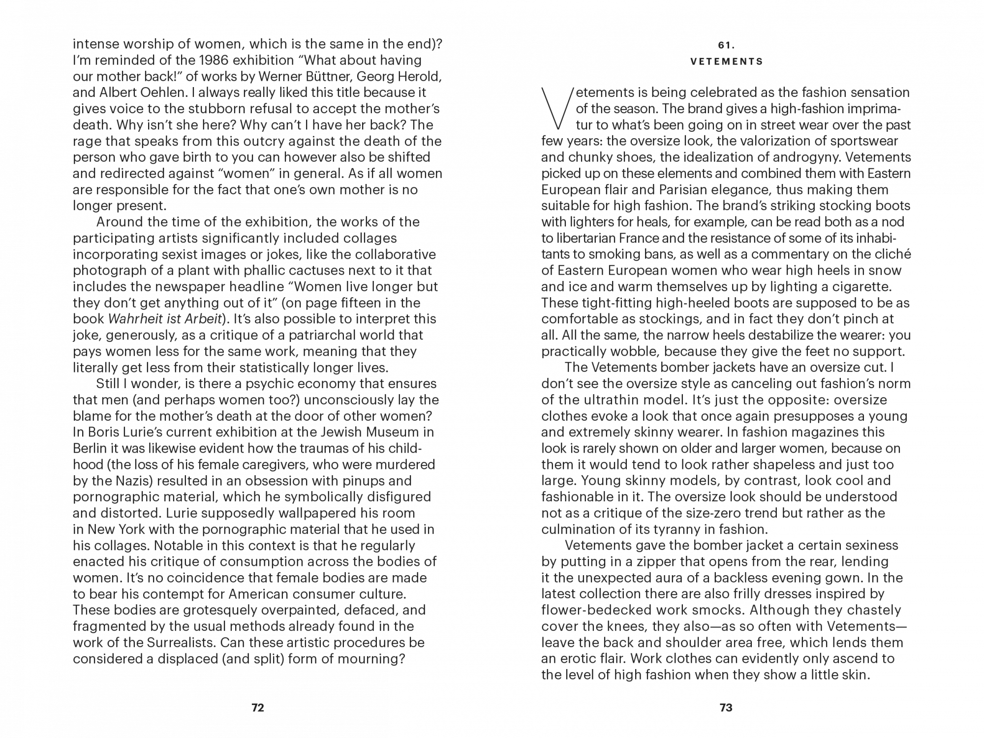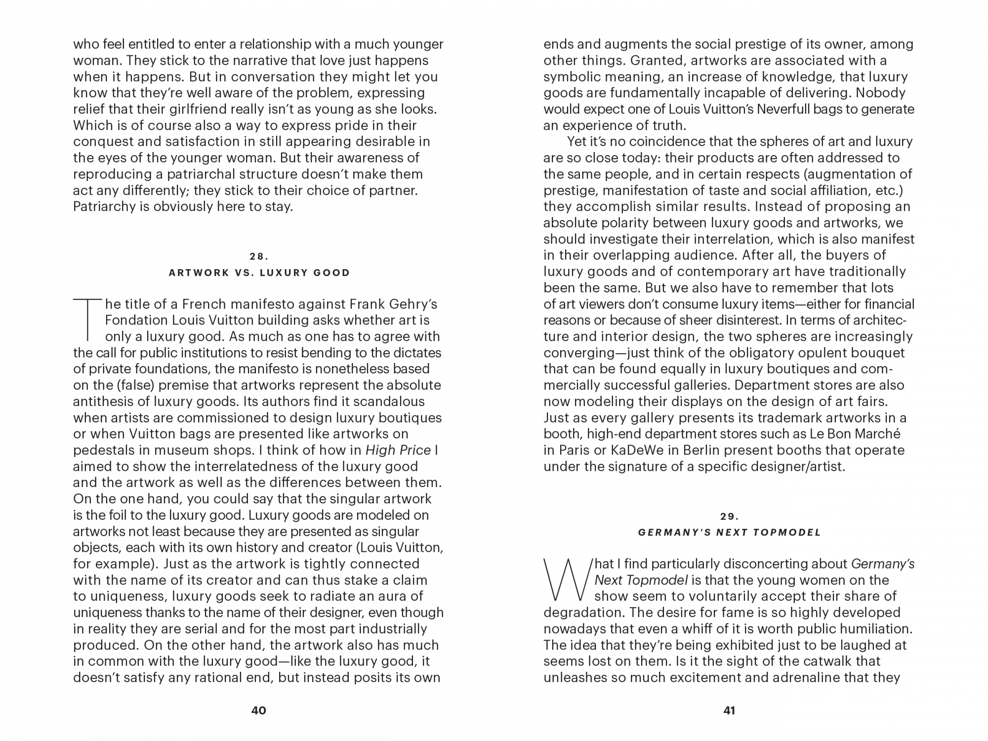 “In her book In Another World, Isabelle Graw effortlessly manages the balancing act between reflection, recapitulation, and autofiction. Despite, or rather because of, her intellectual brilliance and pointed style, Graw’s collected aperçus are quite moving emotionally. They are also at times extremely funny.”