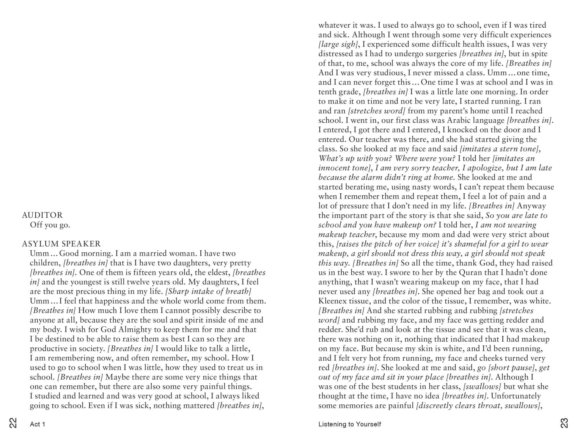A “politics of listening” is an intervention into and a reorganization of forms that listening takes rather than a call for free speech or for a platform for voices to be heard. Listening is a political act, a pedagogical process, and an activity that can lead to the development of an organized protocol for engagement.