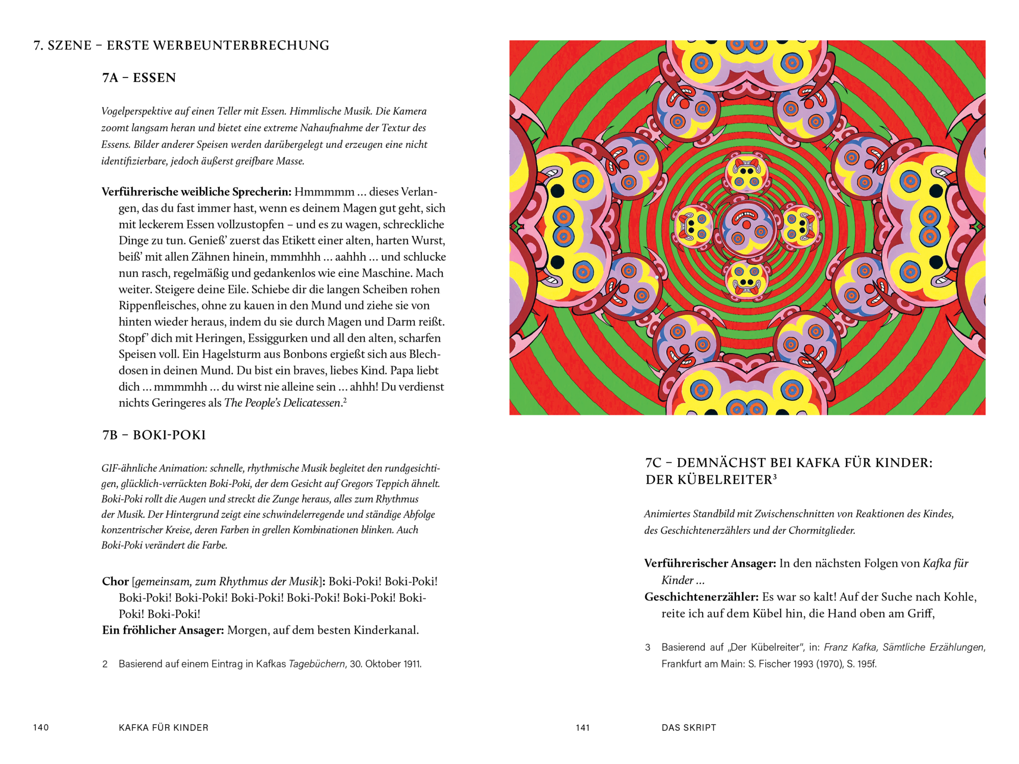 Roee Rosen’s film Kafka for Kids is set as the pilot episode for a TV series that perversely aims to make Kafka’s tale “Metamorphosis” palpable for toddlers. In its title, the film Kafka for Kids implies that the intellectual great of modern literature will finally be presented in a way that is generally understandable. Roee Rosen wants to present Franz Kafka, of all people, with his contorted thought constructions, in a way that is even accessible to kids! But unfortunately, that’s not how things turn out: the star writer of the educated middle class is not simplified, but his story becomes much more complex, corresponding to reality, for reality is more complicated than we like to represent using biaxial graphs.