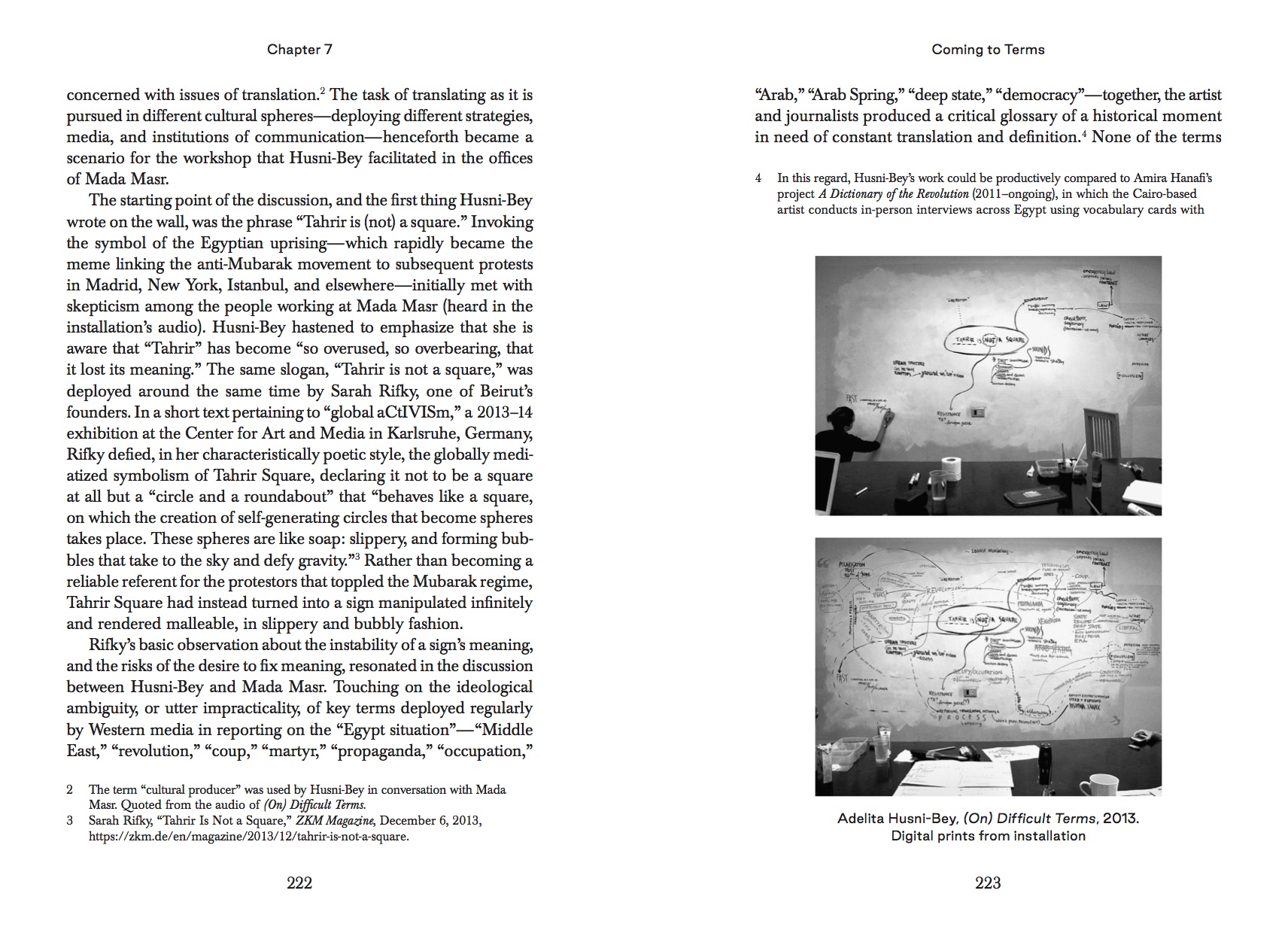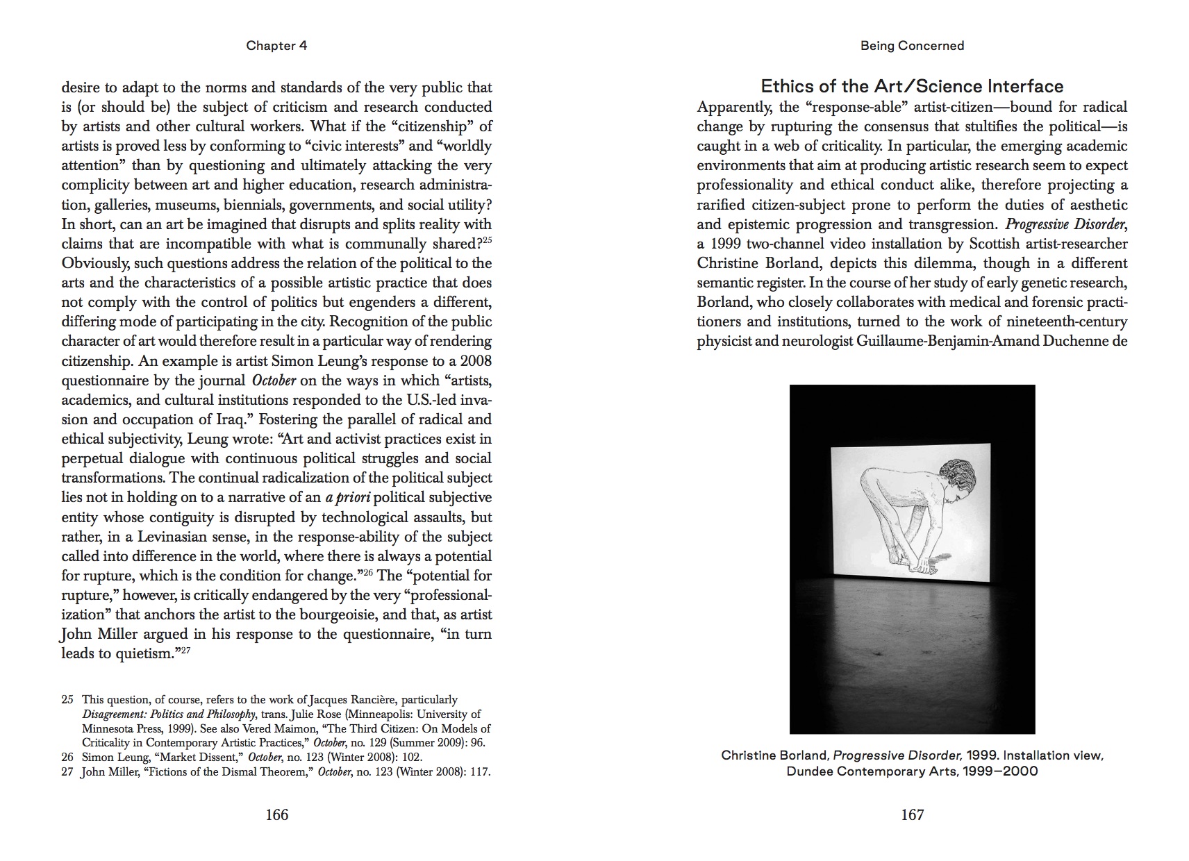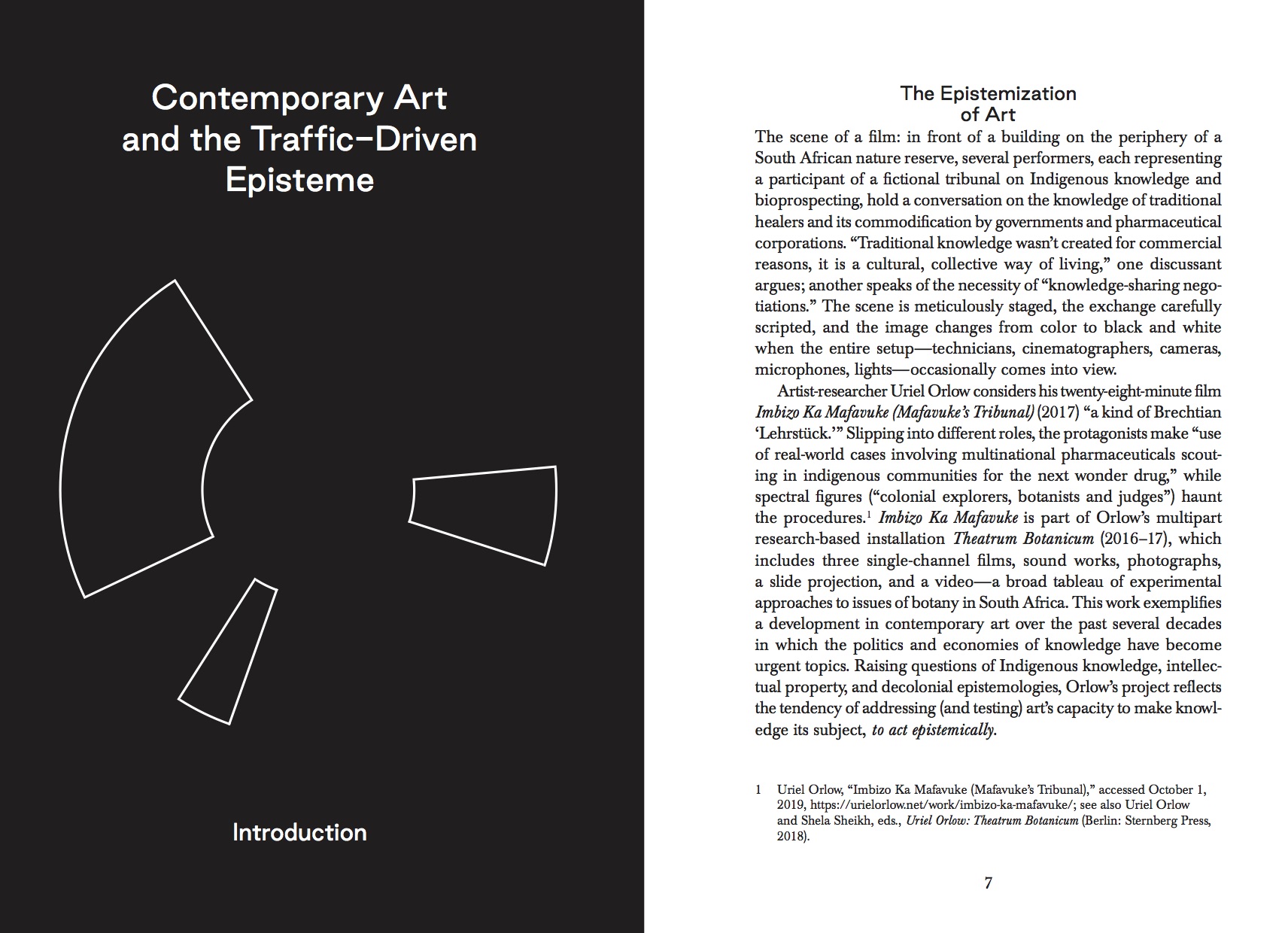 done the difficult job of precisely formulating the question that touches a core of art’s posture today. Through eight poignantly themed chapters, he takes us through the elusive avenues that constitute art’s now rarely contested claim to knowledge production, slowly carving out their figures, forms, and rhythms, leaving us with a nagging doubt; not the kind of doubt that incapacitates us, but the kind that gets us thinking and moving further.”