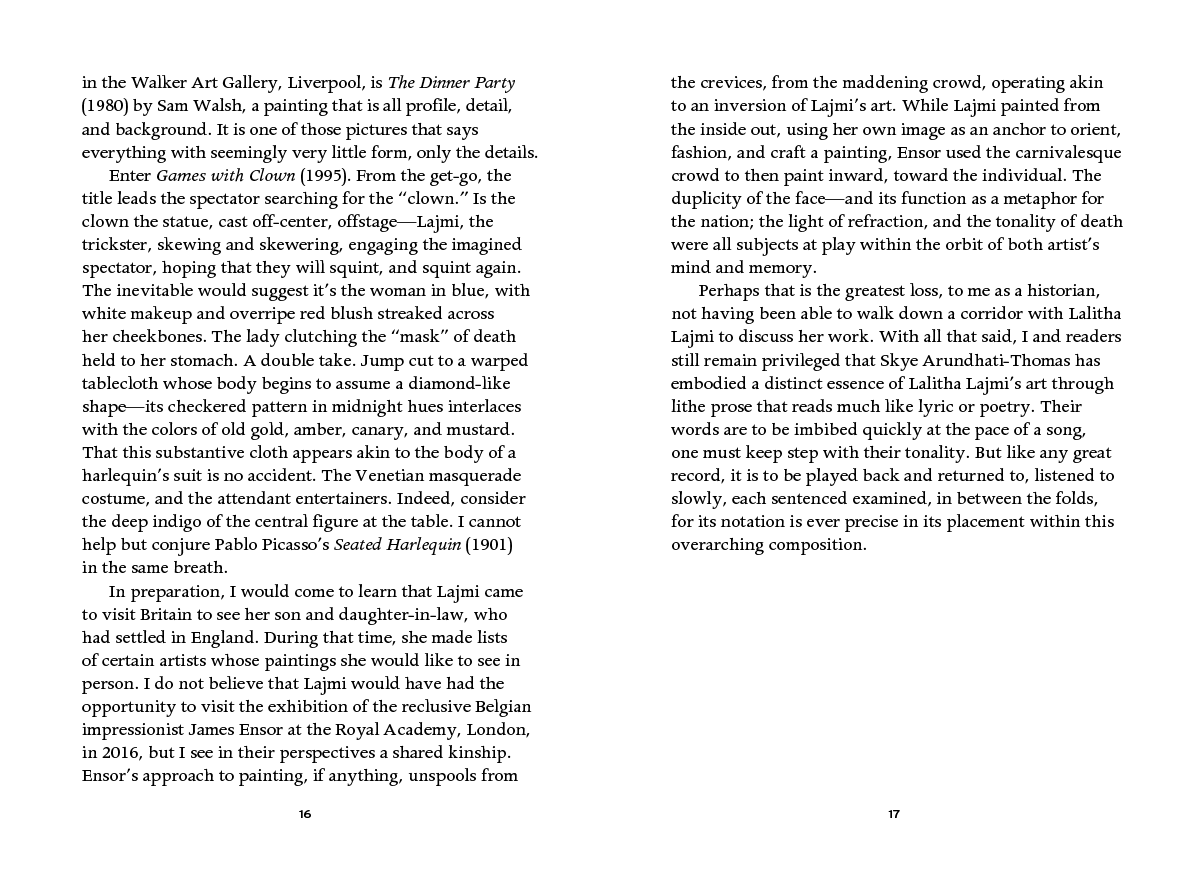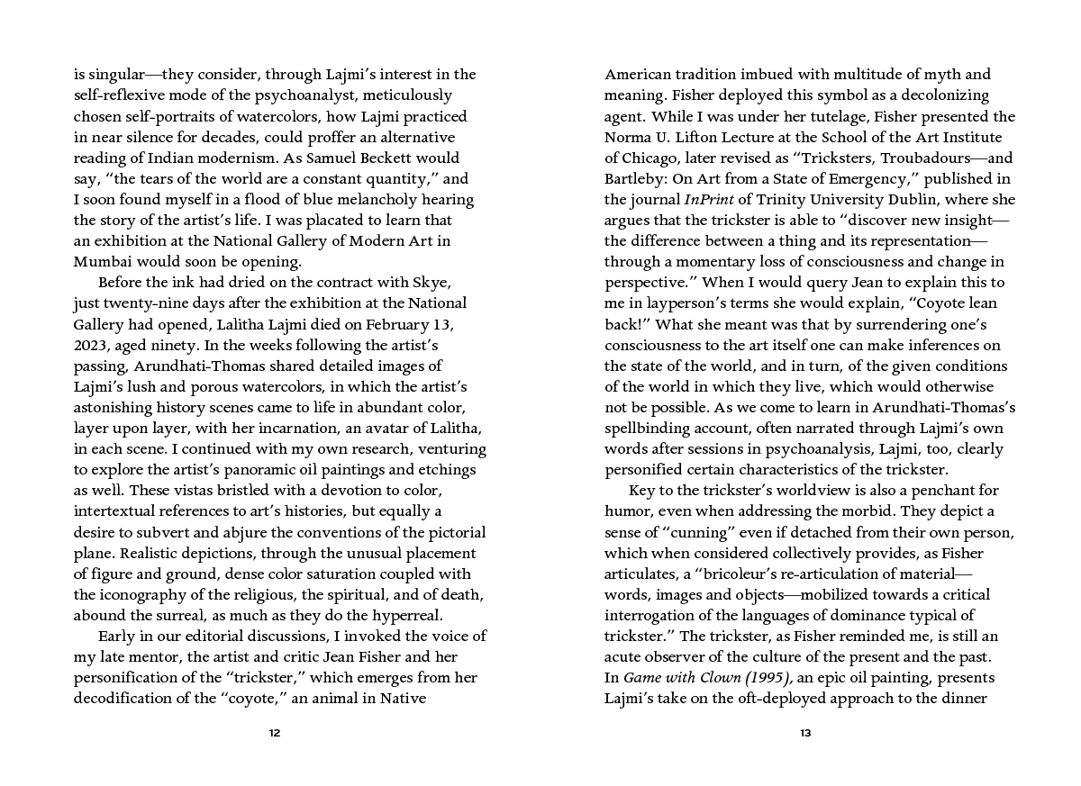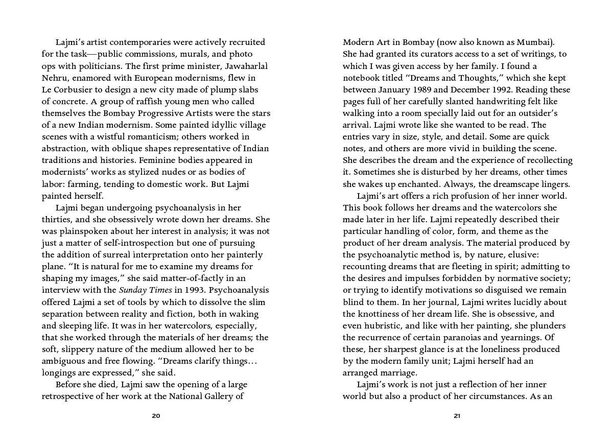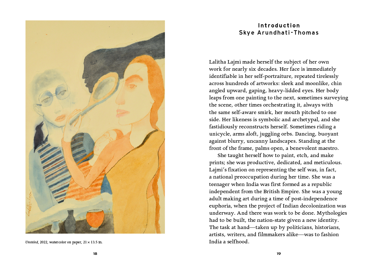 In this first critical volume and biography of the artist, author Skye Arundhati Thomas delves into Lajmi’s archives, papers, letters, and sketchbooks in pursuit of clues about the artist’s character. Arundhati-Thomas also reveals the critical role that psychoanalysis played in the evolution of Lajmi’s art into the realm of the conceptual and, specifically, a distinctly situated form of autoethnography. Studying Lajmi’s relationship with her psychoanalyst, Thomas describes how these sessions fueled a practice of self-portraiture that formed the bedrock of the artist’s practice.