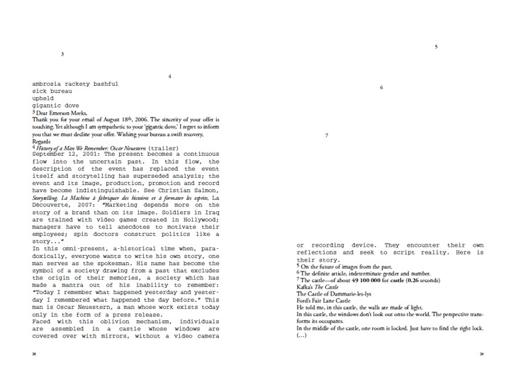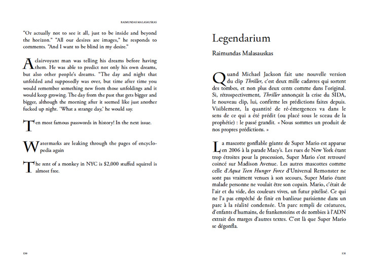 Traditionally, all legends are conveyed through fables and stories based on secrets, lies, manipulations, and exaggerations of historical and popular truths. Legend is archaic speech that circulates in close connection with images. As such, it comes close to the imaginary. Lodged in a distant past, legend seems initially to have nothing in common with this era’s perpetual present. And yet, the present produces its narratives too. Today’s stories are digital carriers of information, strung out on “dot-com hysteria” and fifteen seconds of fame. But because this present only exists through the hypothetical future we grant it, and because we can barely process the records it incessantly extrudes, its history is becoming increasingly impossible to write: we walk on the edge of legend.
