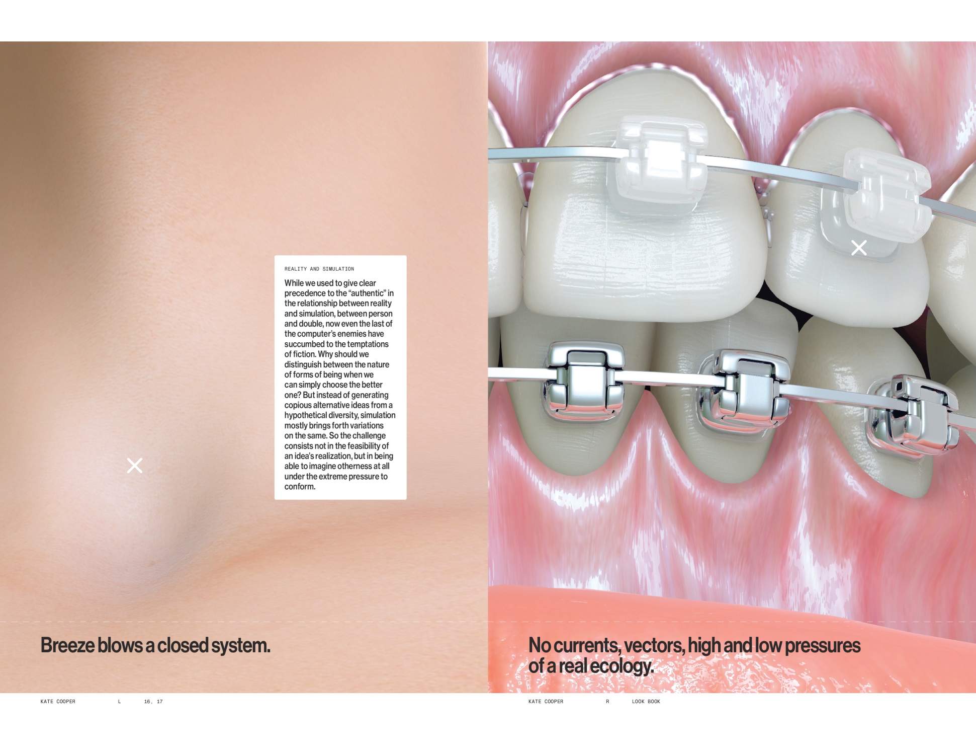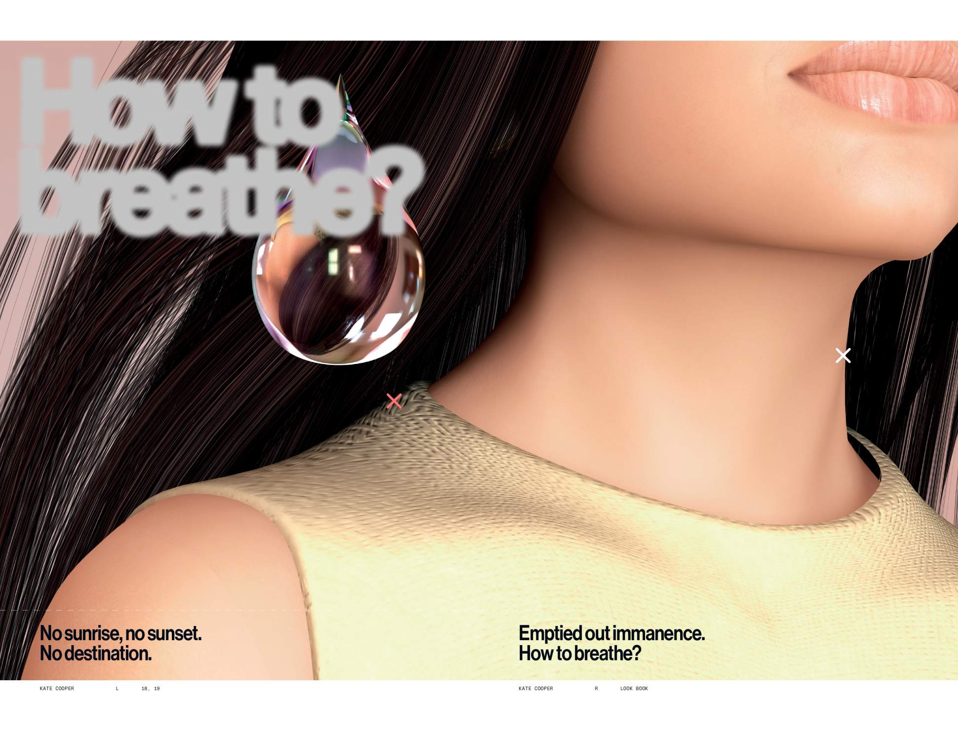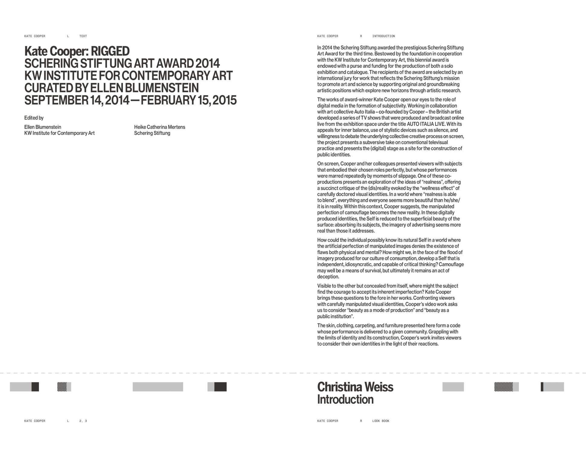 This publication accompanies the first institutional solo show by Kate Cooper, winner of the 2014 Schering Stiftung Art Award. Exploring the format and presentation inherent to image production, Cooper returns to the CGI female models used in her exhibition at KW Institute for Contemporary Art, Berlin, to create a new series of works situated within the fictional space of the lookbook.