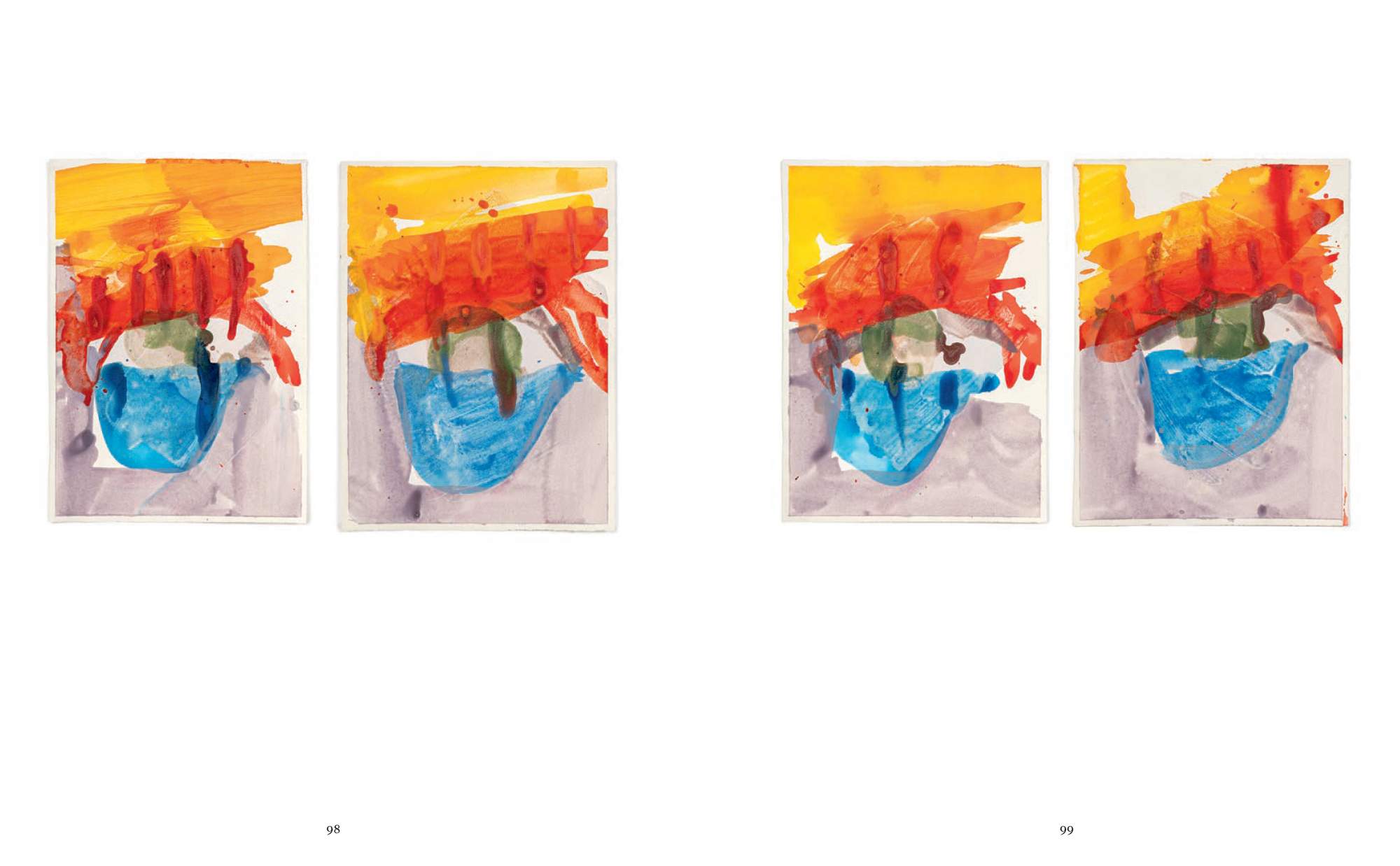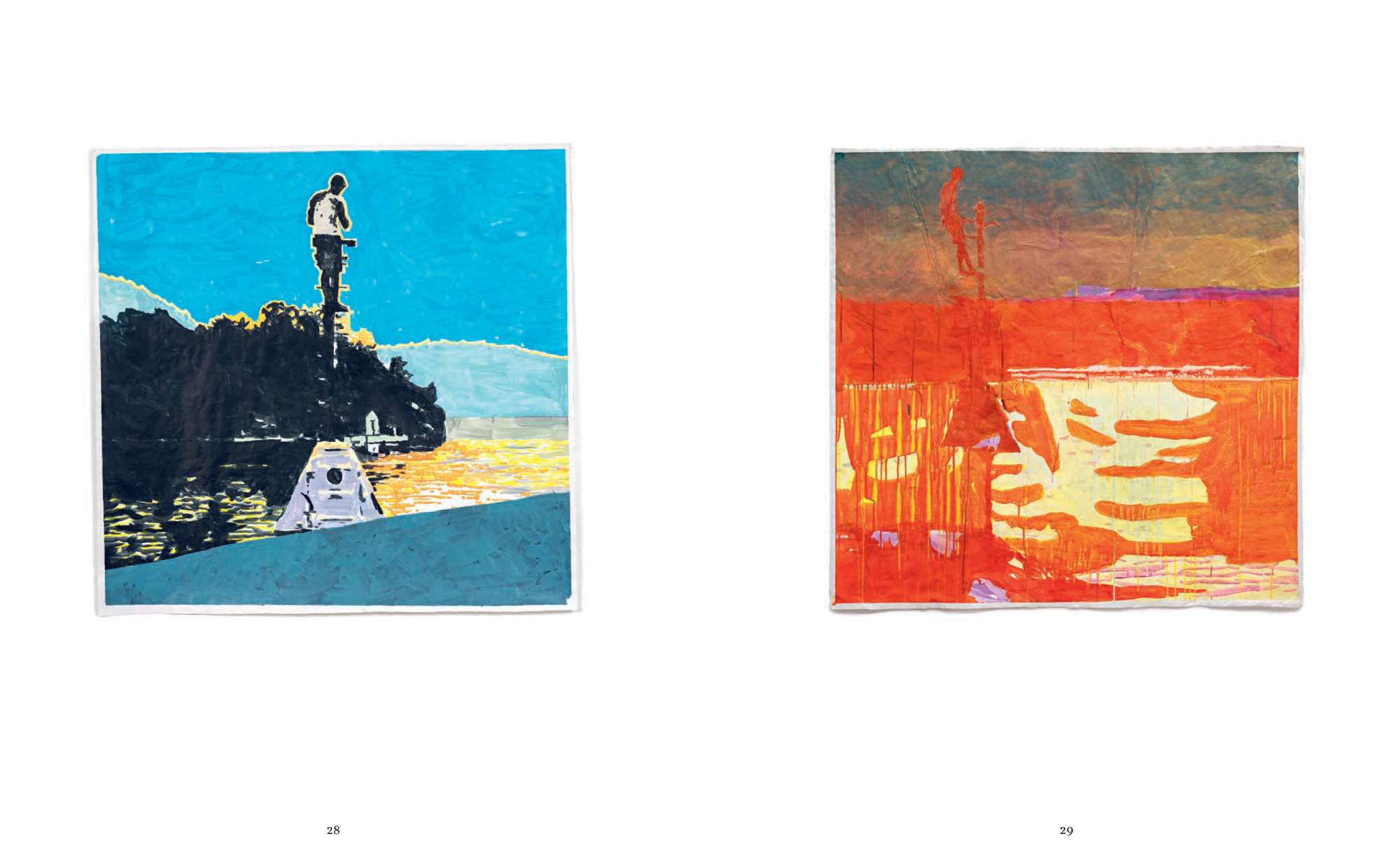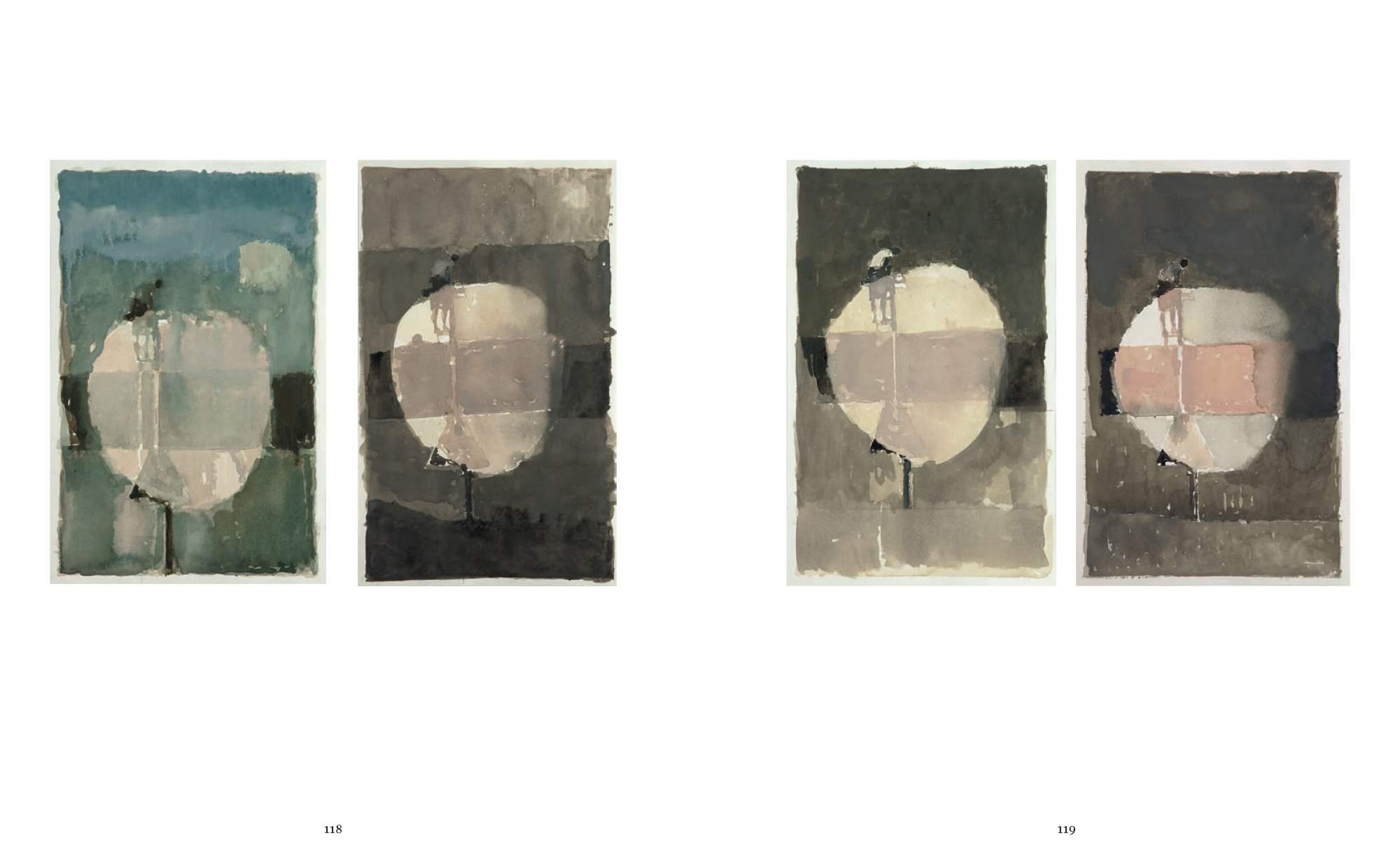 Templates is a new publication which accompanies Slaattelid’s exhibitions at Bergen Kunsthall (2019) and Kunstnernes Hus (2020). Documenting her works for these exhibitions, the book focuses on two groups of paintings: In Kystverket Slaattelid repeatedly depicts a prosaic yet charged motif, consisting of a coastal landscape with a lantern (navigation marker) and—in silhouette against the sky—an operator adjusting the light signal. The Template-paintings on the other hand evokes a more abstracted landscape motif “found” from residual material during the painting process, in which a coastal landscape silhouette is lifted from traces of paint left on pieces of masking tape. The works reflect the painter’s gaze; ways of seeing not only the surroundings, but also ways of dealing with representation, and how the non-material act of perception can be translated into the tactile presence of a painted work. The gaze is a recurring theme in the book, appearing both in the lantern motif, where a circle is inscribed in a triangle like an "all-seeing eye," and in a series of works depicting a human eye.