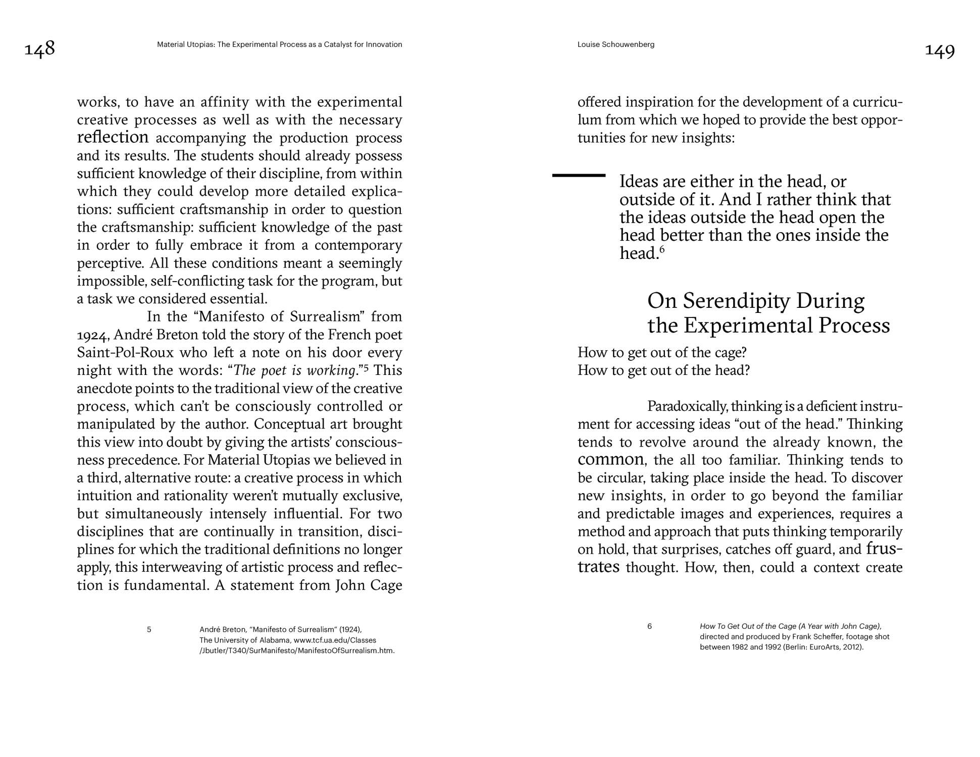 In the slipstream of conceptual art, the intimate interweaving of meaning and materialization in art and design came to be discredited in the second half of the twentieth century. The master’s program Material Utopias at the Sandberg Instituut put an end to this tradition by abolishing the unproductive hierarchy separating “concept” and “making,” “content” and “process.” In this publication, various authors reflect on the history of dematerialization and deskilling, the manifold meanings of materials in art and design, and the challenges for education when the innovative power of the artistic process is celebrated.