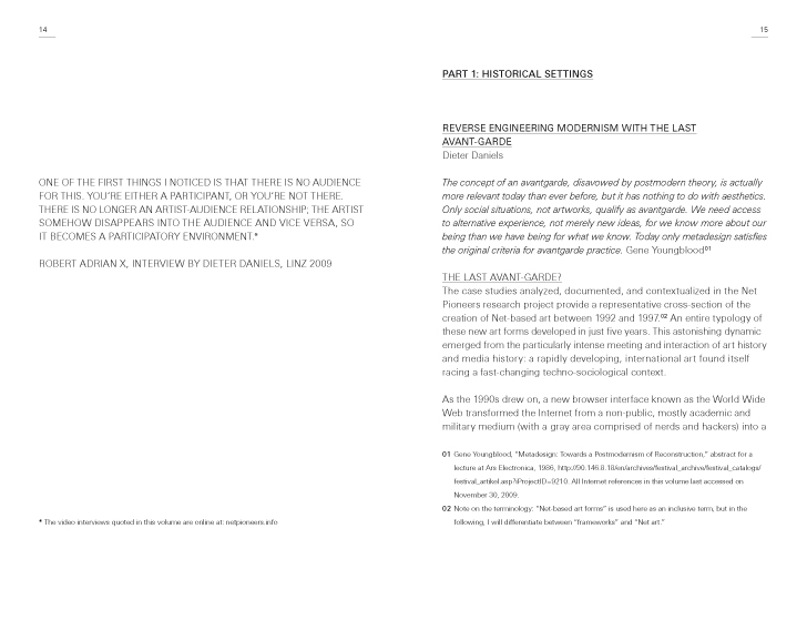 “Net art is seen as an archaeology of the future, drawing on the past (especially of modernism) and producing a complex interaction of unrealized past potential and Utopian futures ...”