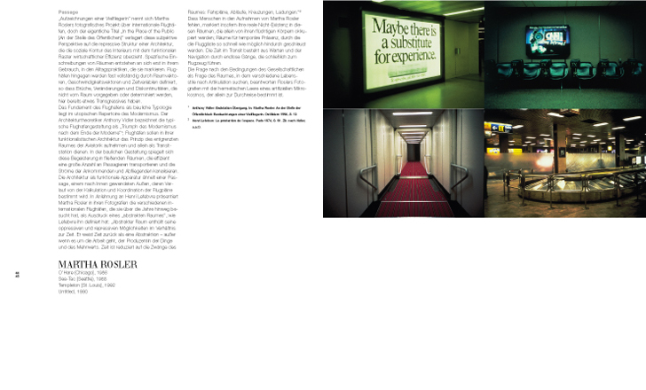 Fully illustrated, the catalogue documents works by Emmanuelle Antille, Siegrun Appelt, Gabriele Basilico, Michael Blum, Martin Boyce, Thomas Demand, Peter Friedl, Ori Gersht, Jonathan Horowitz, Anna Jermolaewa, Viola Klein, Katrin Korfmann, Mark Lewis, Friedrich Ludewig, Olaf Metzel, Nick Relph & Oliver Payne, Martha Rosler, Julika Rudelius, Sofie Thorsen.