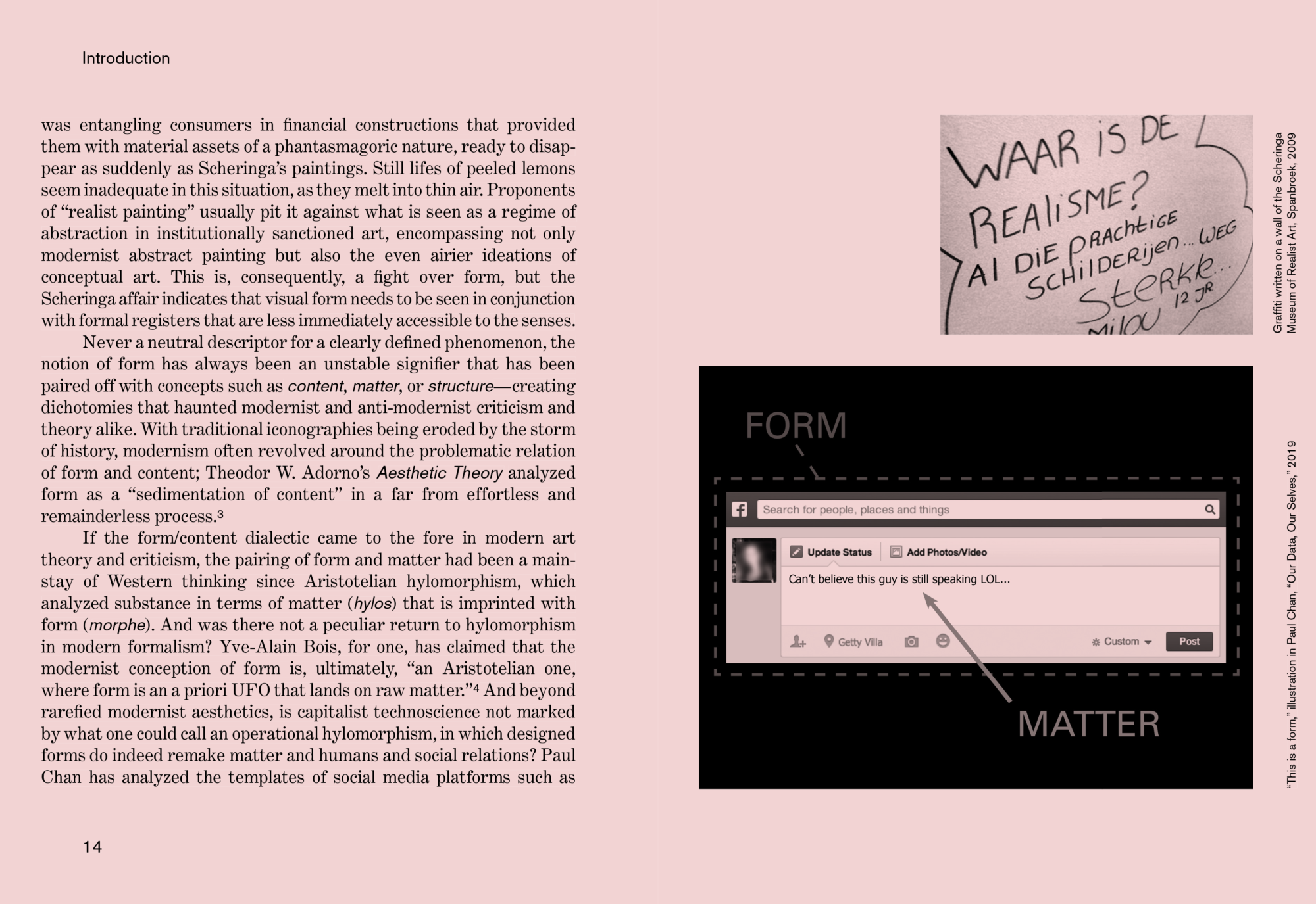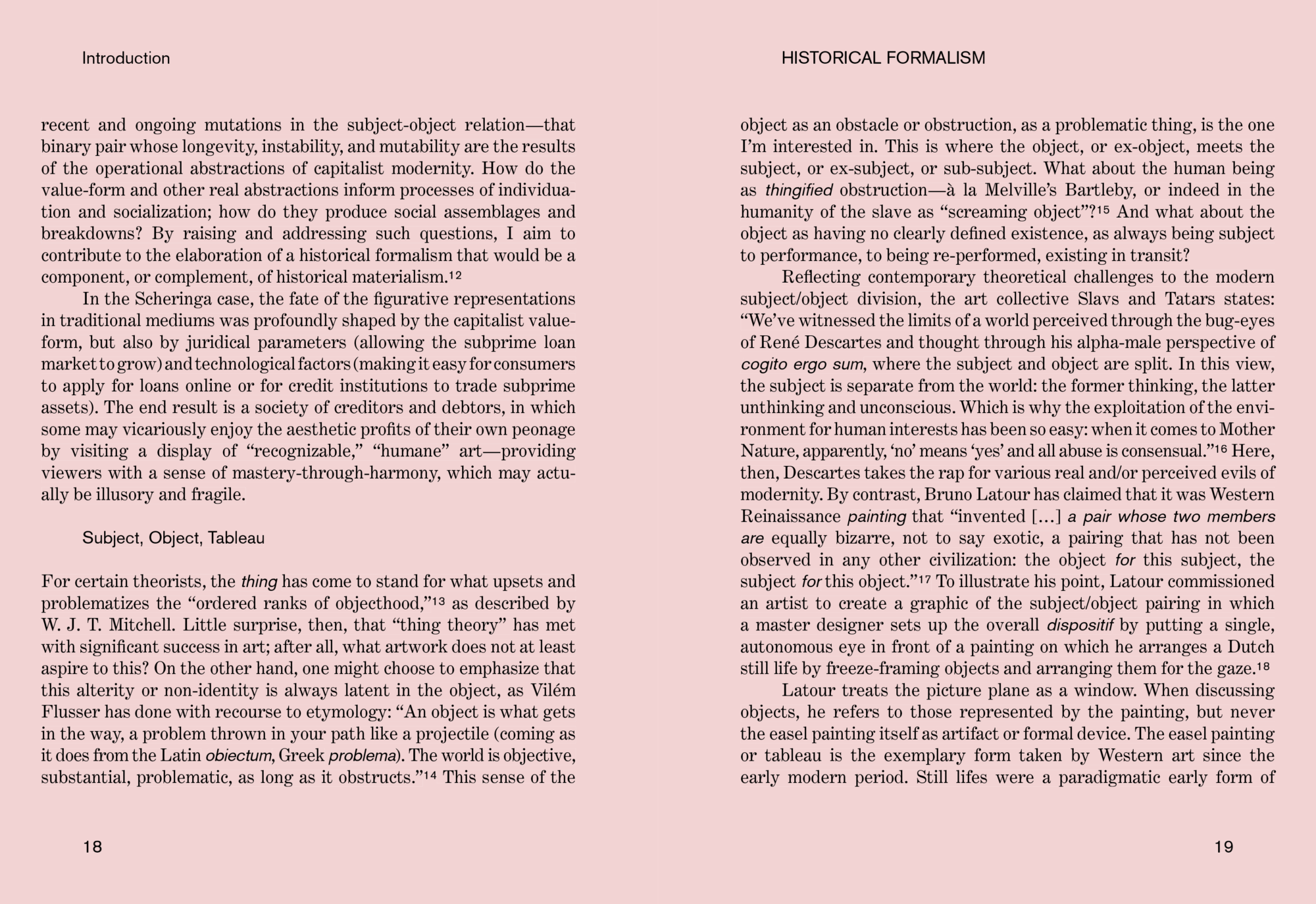 Forms of Abstraction engages with abstraction not as a formal option in art, or as an airy theoretical speculation, but as an operational force that has redesigned our world and continues to do so. The first volume, Objections, takes its cue from the Latin root of object, obiectum—which refers to something put before the subject, something thrown in one’s way. This sense of the object as obstacle or obstruction, and of the artwork as an aesthetic and political objection, is explored in this volume. Objections sees artists engaging with materiality and value, with subatomic particles and radiation as well as with the objectification of human and nonhuman organisms. Along the way, we encounter theoretical objects such as the fetish, the plaster cast, the patented bacteria, the buried radioactive container, and the contemporary artwork itself. Contemporary art is analyzed here as a set of aesthetic practices revolving around problematic and questionable objects that can act as productive objections.