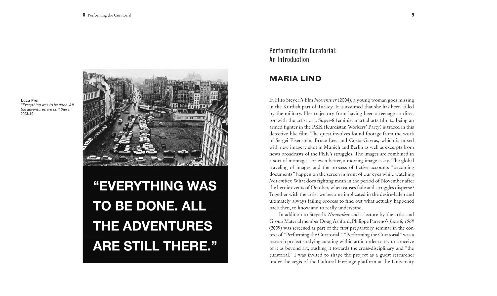 Performing the Curatorial brings together a diverse group of curators, artists, art historians, educators, and thinkers, all of whom reflect on the curatorial motives, tendencies and tactics, pitfalls, and exegeses in translating, and thus performing, cultural heritage.