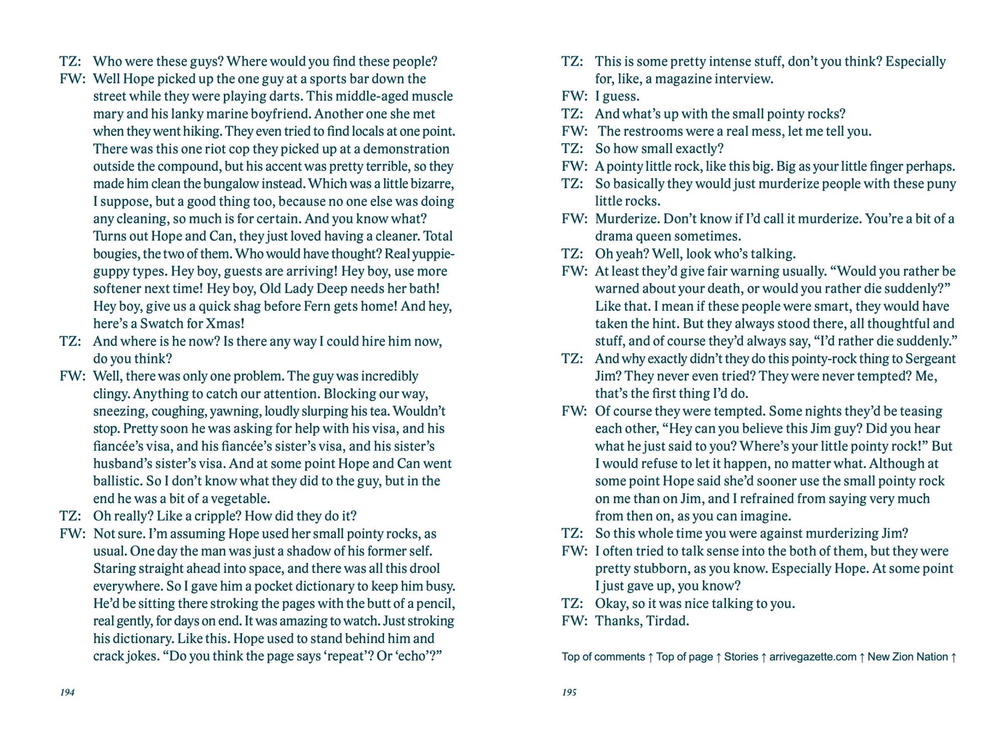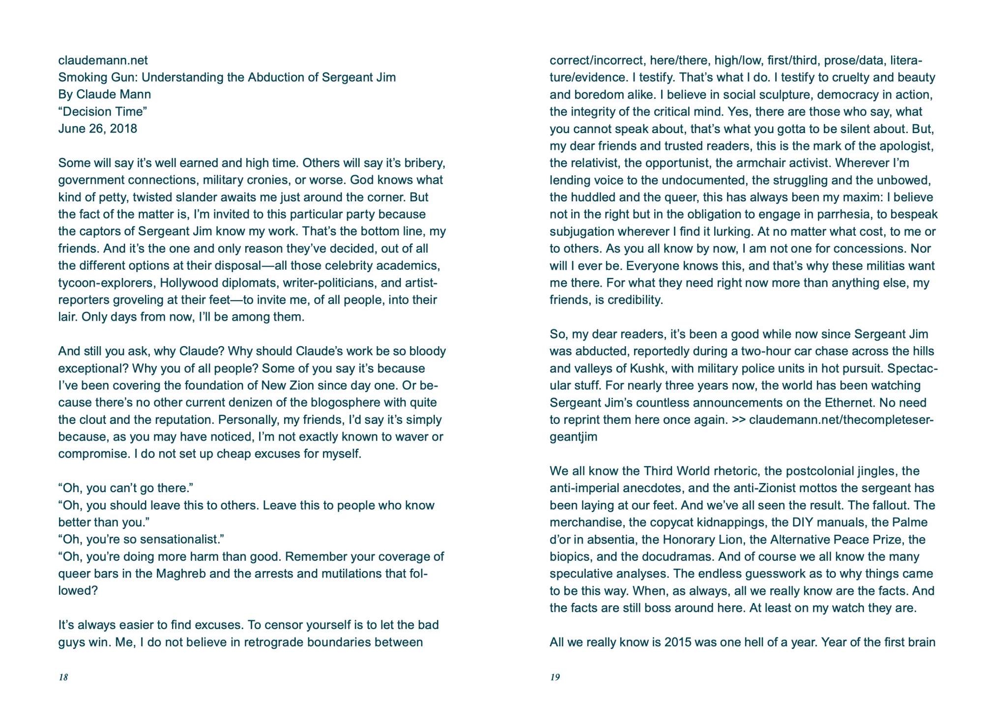 A speculative, existentialist fiction on the melancholia of revolutionary politics and good intentions, Tirdad Zolghadr’s novel is composed of the logorrhea of online communication and unpublished manuscripts. At the start of the New Zion Empire in 2016—a time of unprecedented dystopic stability with superpower coalitions, generous drone regiments, awesome capital investments, and more soft-power propaganda than ever employed in modern history—Sergeant Jim of the United States is taken hostage in Yazd, once the proud seat of the Persian Empire, and becomes a wildly popular mouthpiece for Third World rhetoric, postcolonial jingles, anti-imperial anecdotes, and anti-Zionist mottos. The abductors (a ghostwriter, an aspiring self-help guru, and an academic) invite trusted celebrity blogger Claude Mann to their suburban compound to generate more hype for their cause and to possibly replace Jim as their new abductee. A few years later, the ex-terrorists reconnect when one of them decides to author a memoir of their exploits and gain fame; all the while, Sergeant Jim haunts them with cryptic, tender, frenzied e-mails. Plot is a paranoiac-futuristic novel and exercise in satire and ontology.