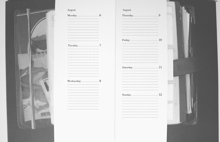 Agenda is an ongoing project by the German graphic designer Manuel Raeder. The project focuses on questioning different methods of how people organize, in a personal or non-personal way, their time. Formats, sizes and distribution systems vary each year. Two white papers are always sitting on top of publications from the past, and small details and close-ups are peaking through with the reflection of the sun on the books. Popurri comes with an extra long book mark.