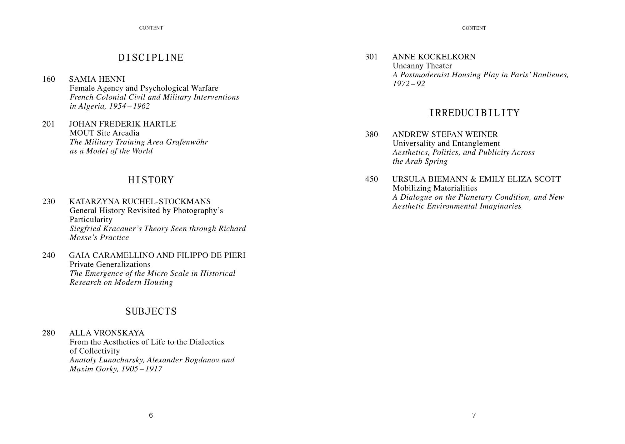 Are we ready again to ask universal questions? The editors and authors of this timely and refreshing volume say emphatically: Yes! But do not fear the old specter of transcendence. Each essay is packed with particulars, in a running dialogue about the specific conditions under which universals appear, and about their performative effects. Each asks: What is a universal, and what does it do? For whom, how, and why? And each responds with new critical scholarship in architecture, urbanism, and the visual arts, refashioned here as a highly particular science of universality.