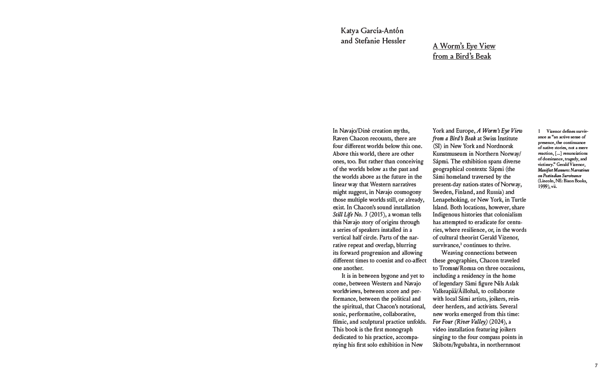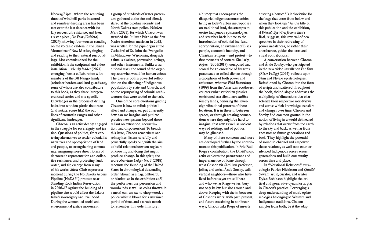 A career-spanning catalogue featuring excerpts from Raven Chacon’s scores, musical prompts, and drawings interspersed with full-color documentation and descriptive texts of installations, sculptures, and performances.