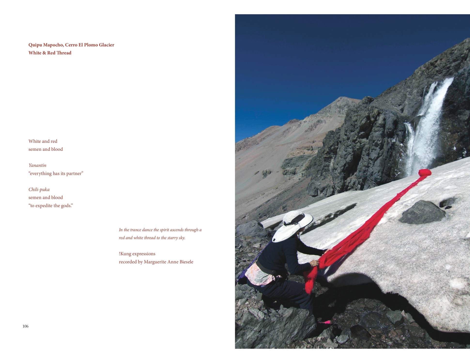 From the 1970s to the present, Cecilia Vicuña’s work has both visually and poetically engaged with rituals from Aboriginal Australia, South Africa, Paleolithic Europe, and pre-Columbian America that involve red-colored thread. The Chilean artist’s performances, site-specific installations, paintings, and drawings relate to the symbolic function of textile and language as well as the ritual dimension of menstrual blood in the construction of solidarity through femininity and maternity, to support and continue life.