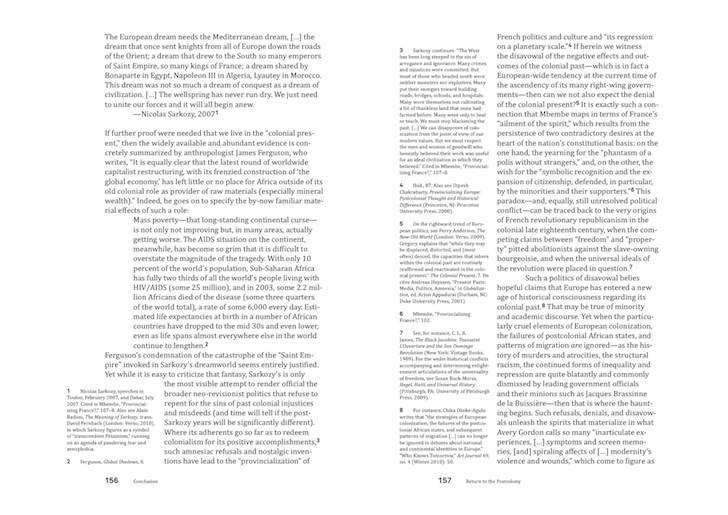 “T. J. Demos places contemporary art within the context of neoliberal globalization and what scholars have referred to as the ‘colonial present.’ The analysis is complex and provocative, both for an understanding of the historical material as well as for the contemporary theoretical discourse. Return to the Postcolony is one of the most ambitious, intelligent, and readable texts on contemporary art related to the African context that I have read.”