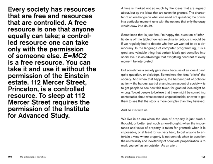 Essays by ten writers cover a wide cross-section of activity, from new approaches to intellectual property and the implications of the free/open source software movement to political activism and the de facto self-organisation embodied in informal architecture and the so-called black economy.