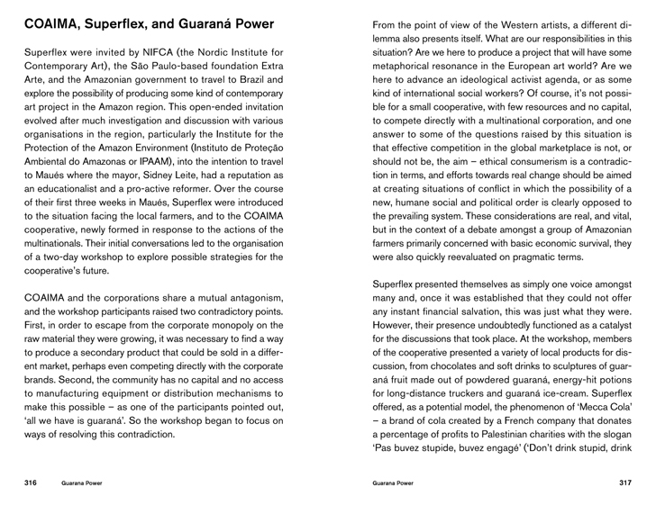 The book Self-organisation / counter-economic strategies was initiated by the artists’ group Superflex, but it is not about them. It is about the many approaches to the creation, dissemination and maintenance of alternative models for social and economic organisation, and the practical and theoretical implications, consequences and possibilities of these self-organised structures. The counter-economic strategies presented here are alternatives to classical capitalist economic organisation that exploit, or have been produced by, the existing global economic system.