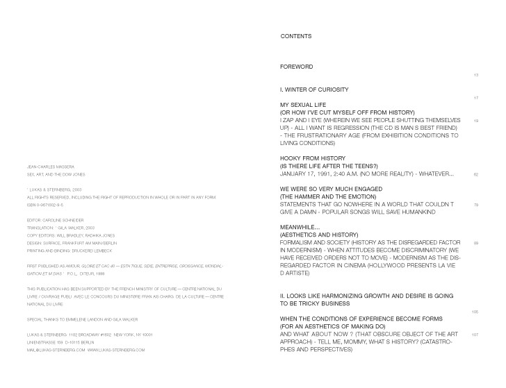 Sex, Art, and the Dow Jones attempts to extract a certain number of aesthetic topics from their historic contexts (art and film history) in order to connect them to the restructuring currently going on in our society. Even today, questions from the 1980s appear to have linking components—a phenomenon occurring within anthropology, politics, and sociology, as well as in the aesthetic context.