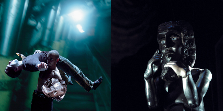Skarbek is a dance-theater project initiated by the German artist Antje Majewski in collaboration with the author Ingo Niermann. The play premiered in Bytom, Poland, in June 2005, and in Berlin in May 2005; it narrates the story of Skarbek, a mythic figure which appears in Polish miners’ tales. Living in abandoned cole mines, Skarbek is an intriguing gnome who both protects and threatens the miners. The backdrop of the piece is a hallucinatory underworld where shifting perspectives create an unstable environment. Dancers constantly change appearance, morphing into gnomes or unflexible figures, until the whole stage shrinks into a marionette theater.